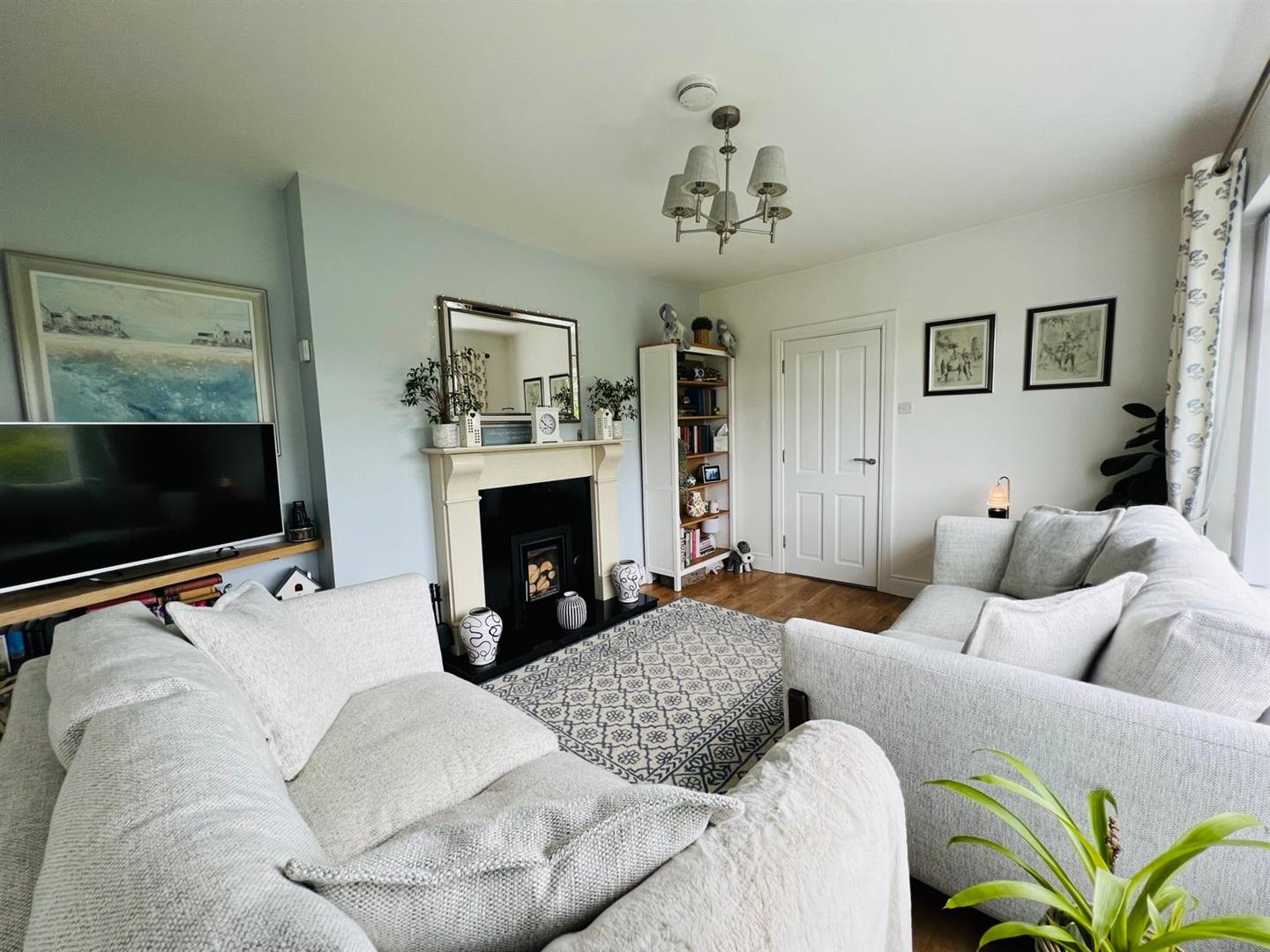 Having attractive fireplace with granite hearth, multi fuel stove, laminated wooden floor.