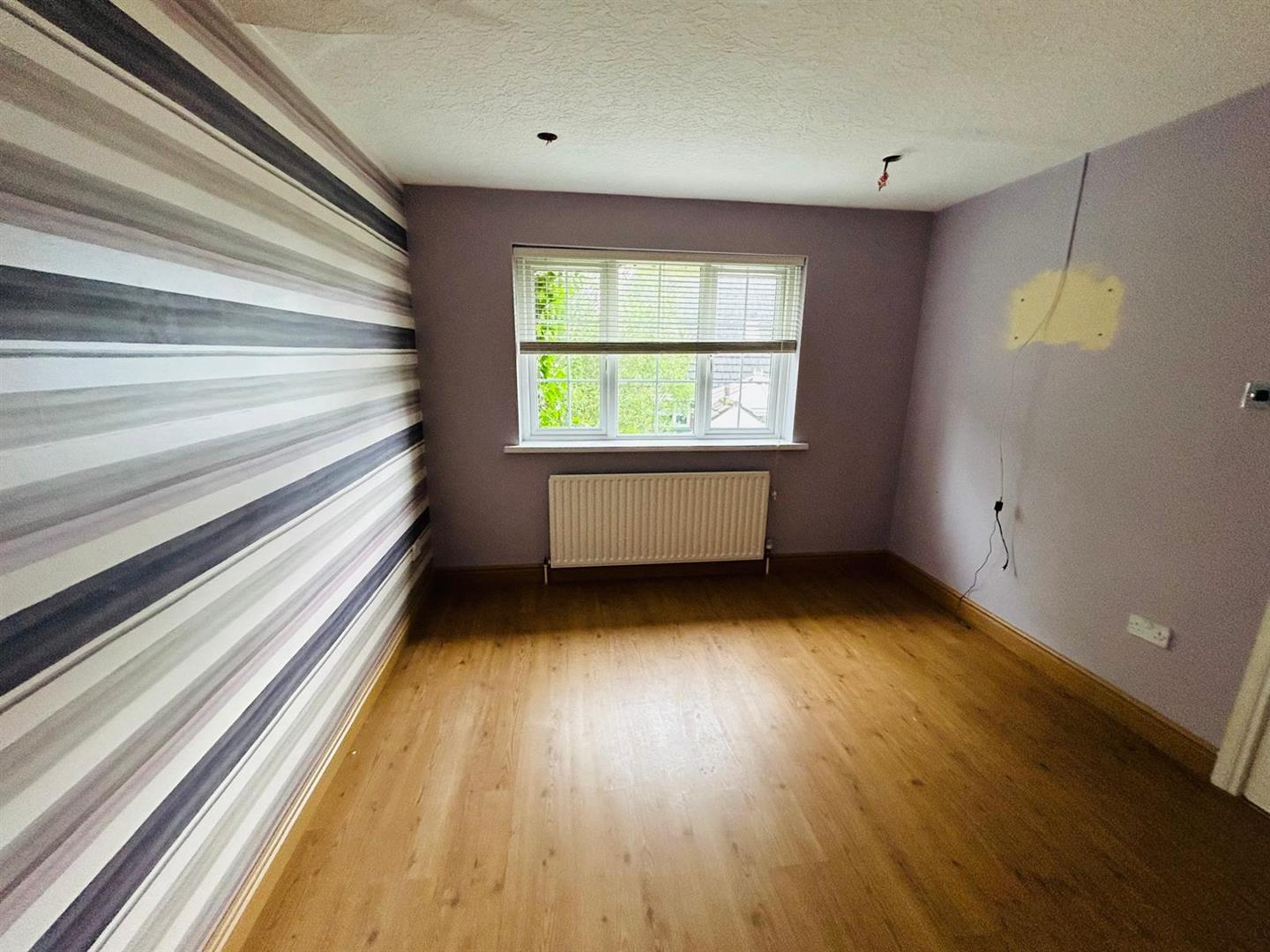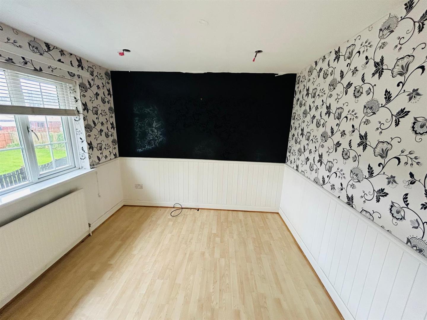 Having half panelled walls, laminated wooden floor.