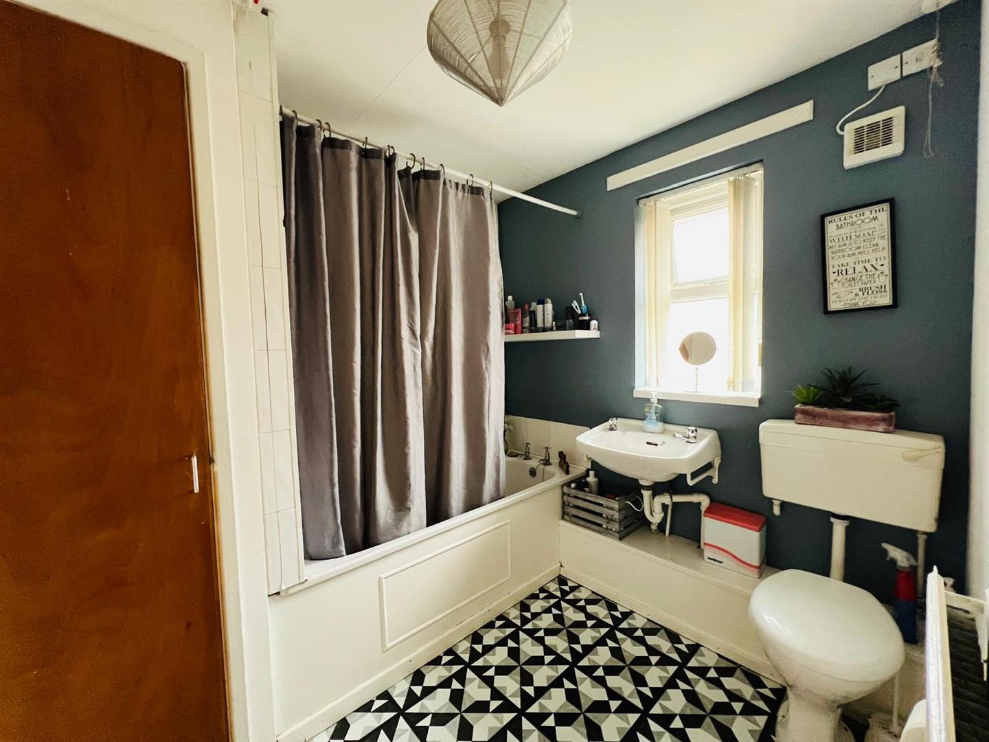 comprising Bath with electric shower over, part tiling around, WHB and WC, hotpress.