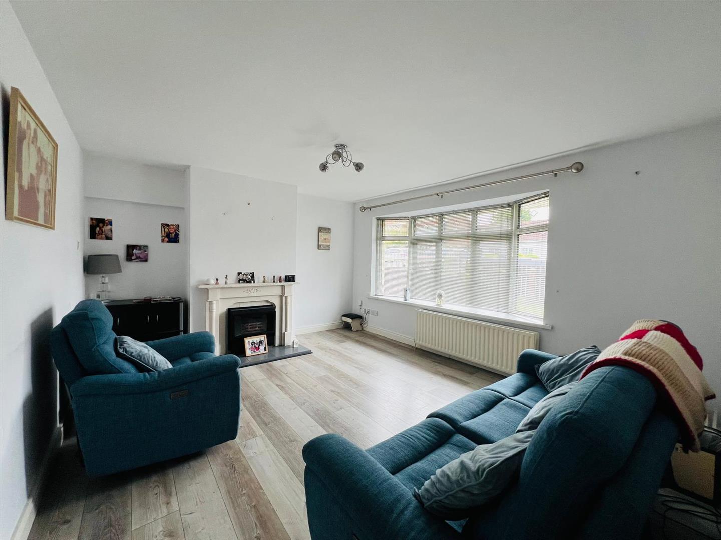 Having fireplace and laminated wooden floor.