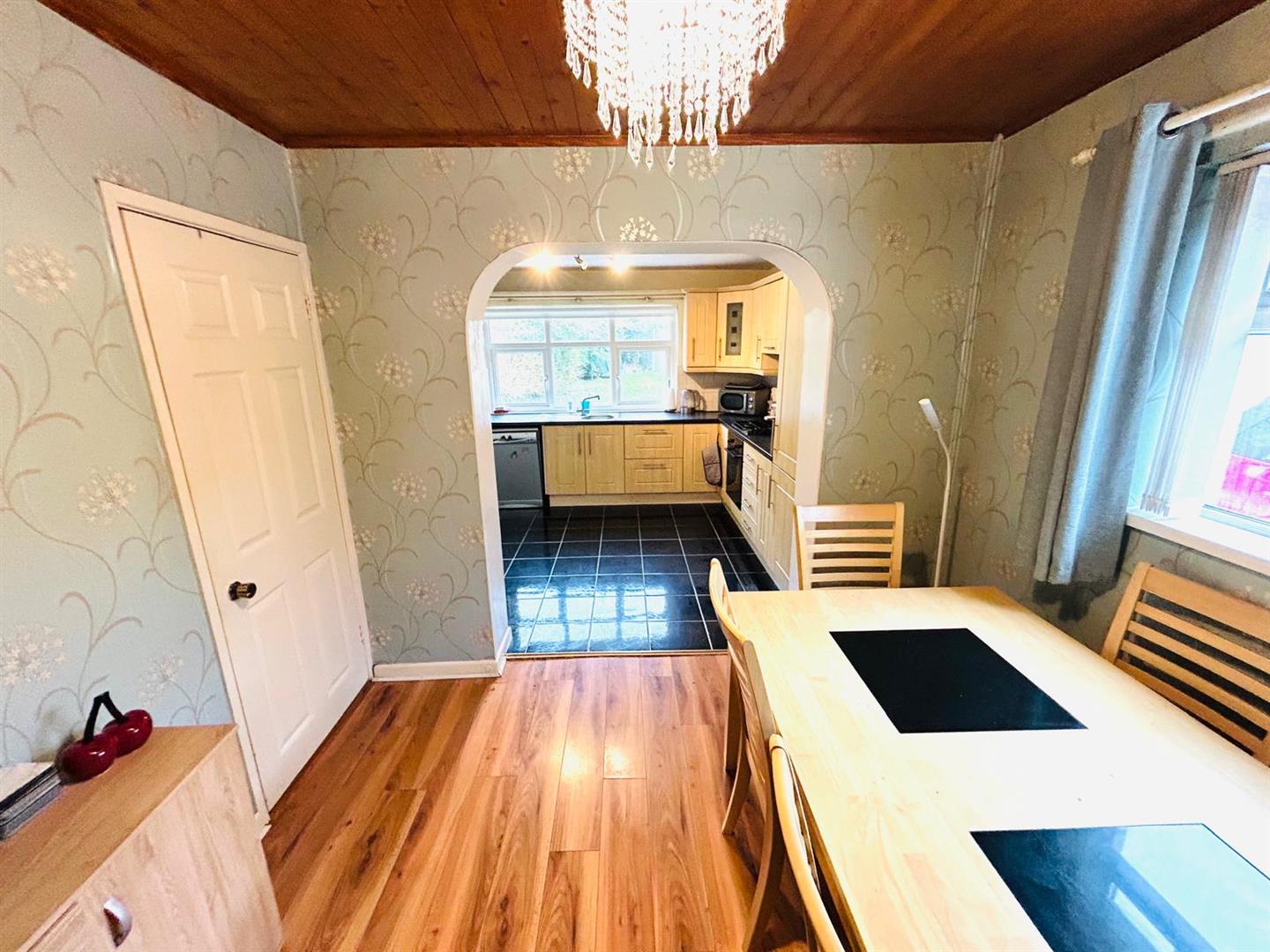 Having understairs storage, laminated wooden floor, archway leading to Kitchen.