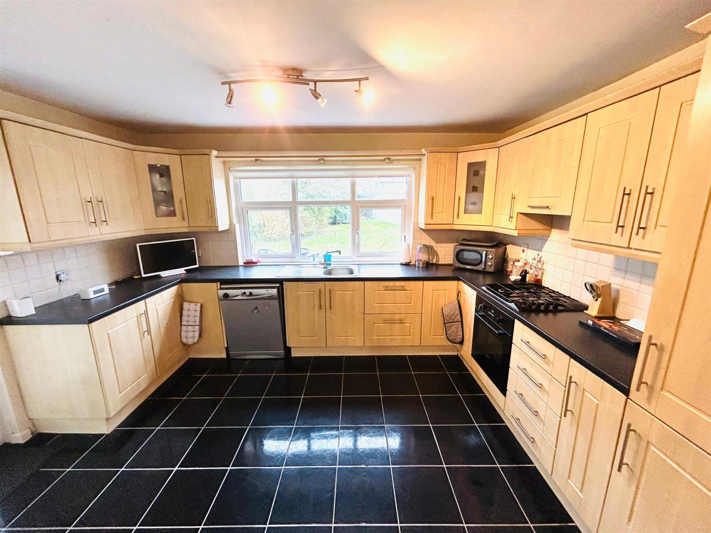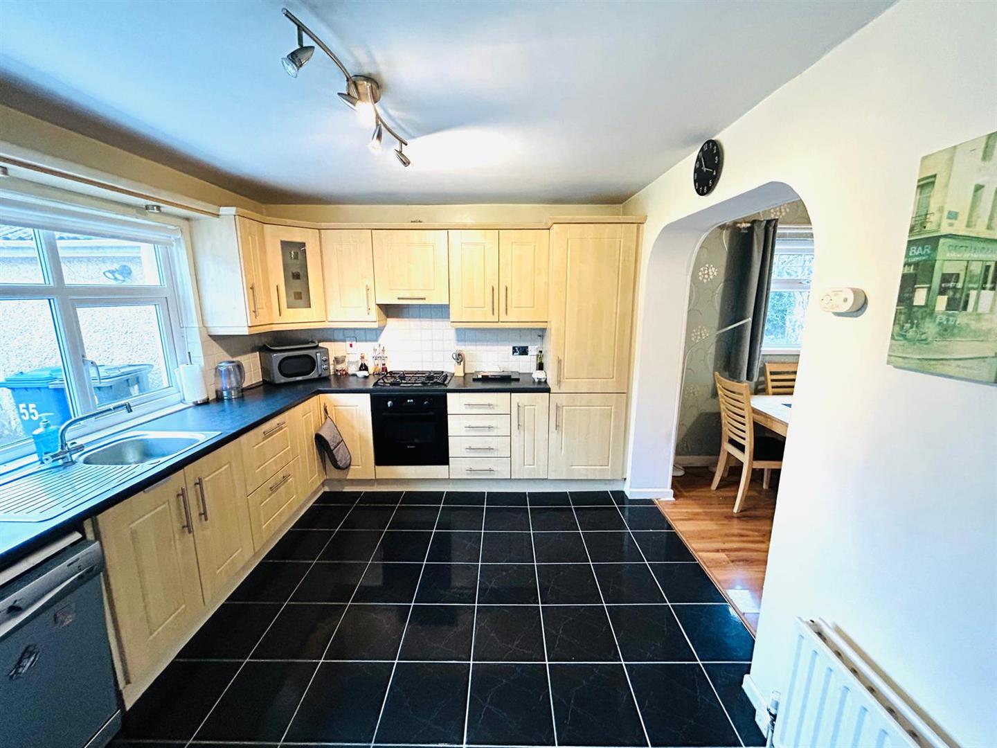 Having eye and low level units, tiling between units, single drainer stainless steel sink unit with mixer taps, gas hob, electric underoven, integrated fridge / freezer, plumbed for dishwasher, tiled floor.