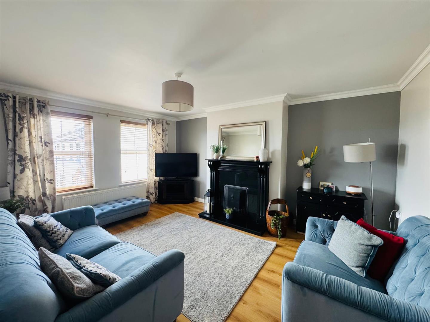 Having fireplace, ceiling cornicing and laminated wooden floor.
