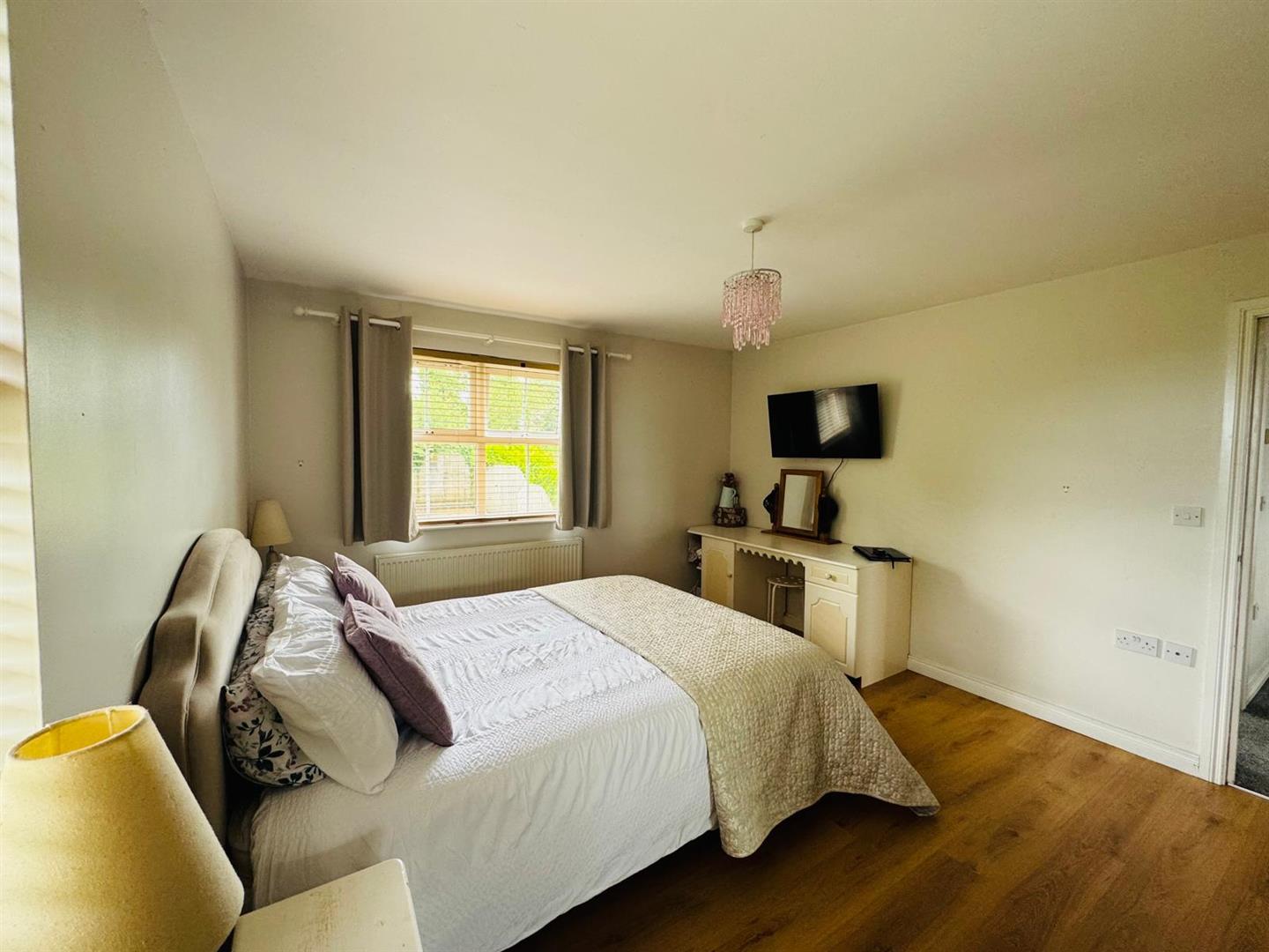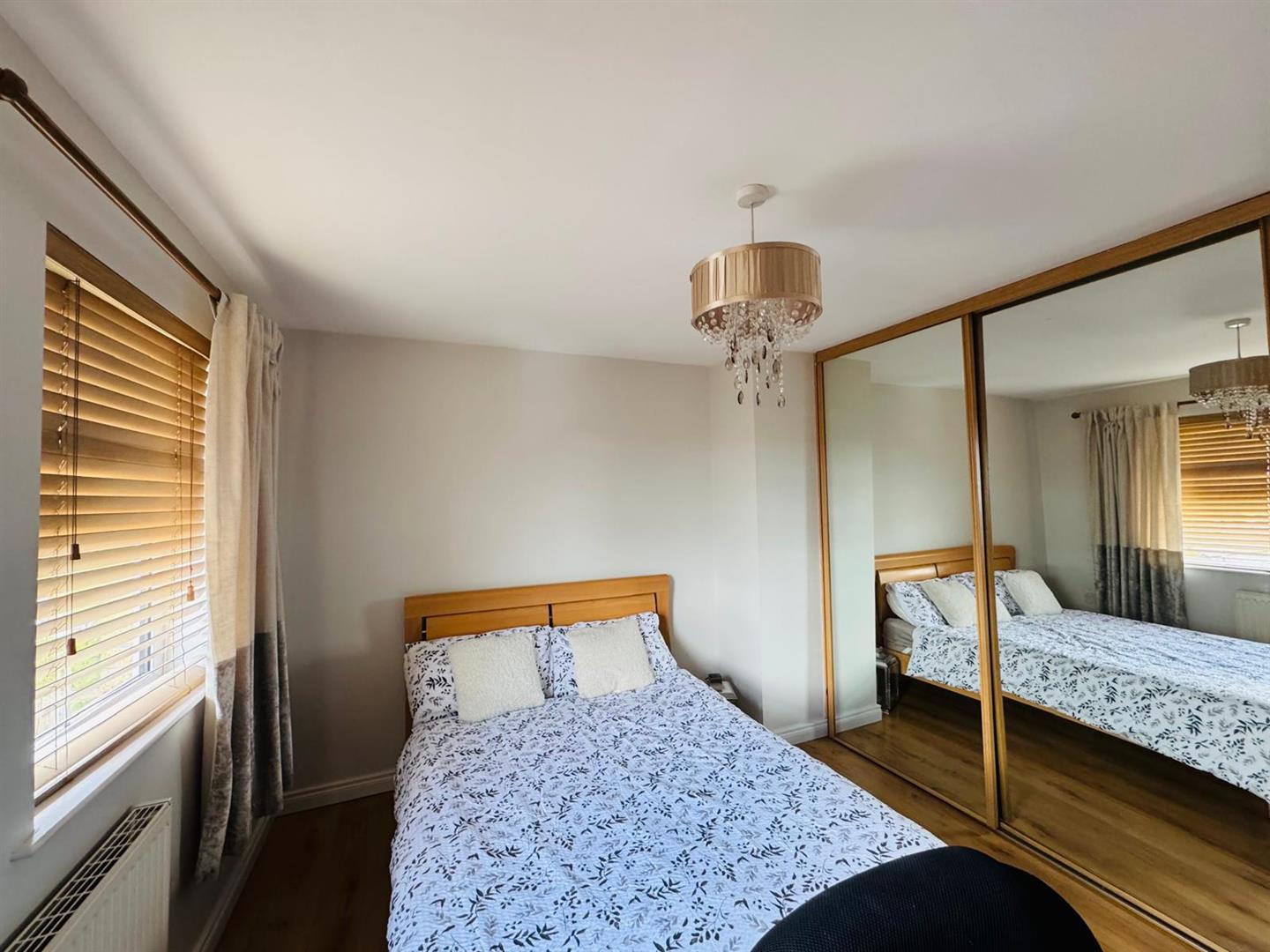 Having built in wardrobes with sliding mirrored doors and laminated wooden floor.