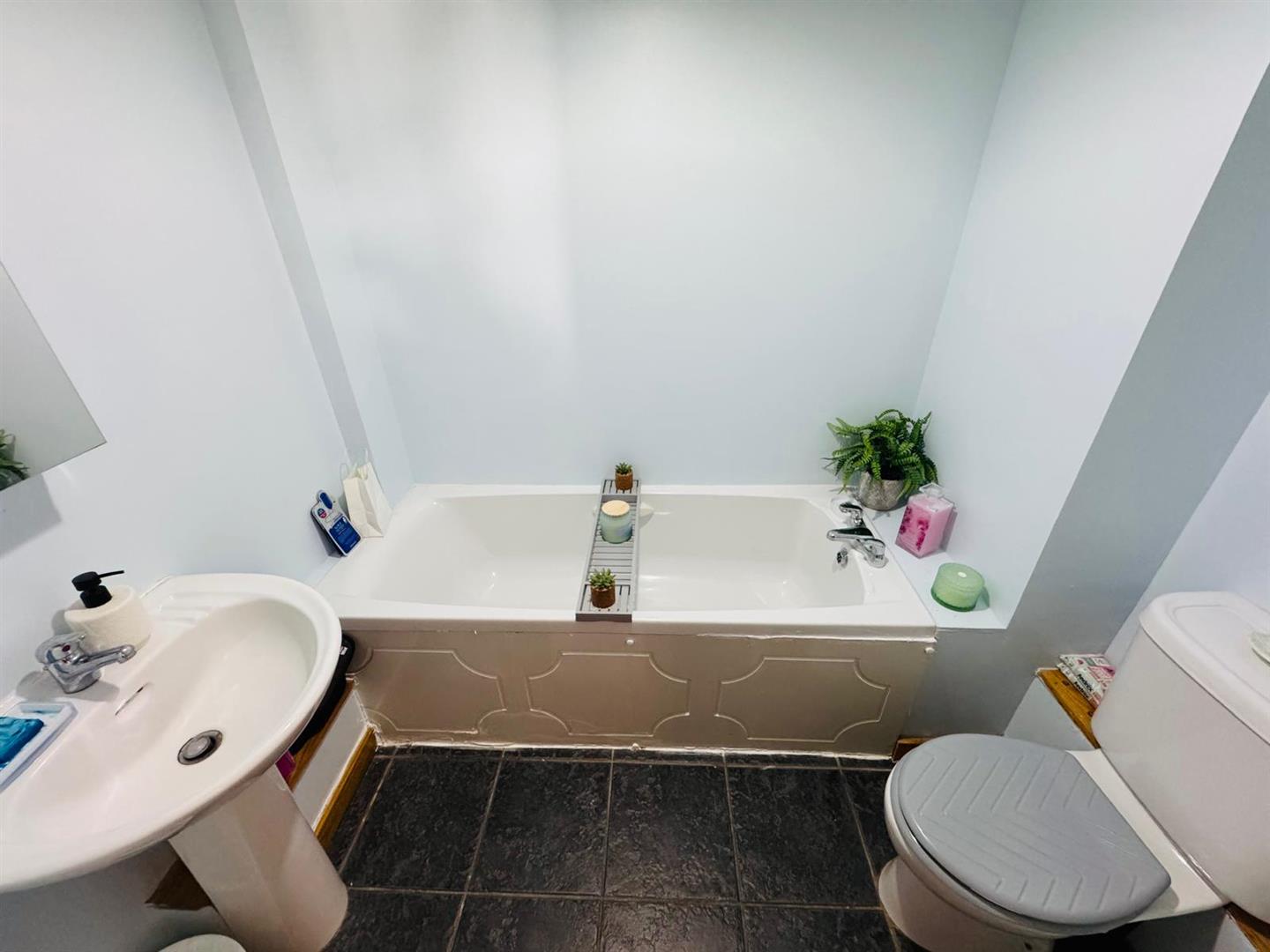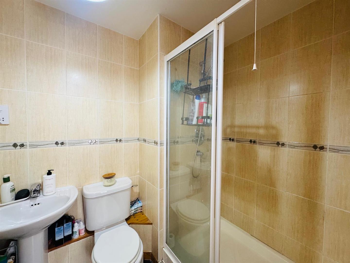 Comprising fully tiled walk in shower, whb and wc, tiled floor.