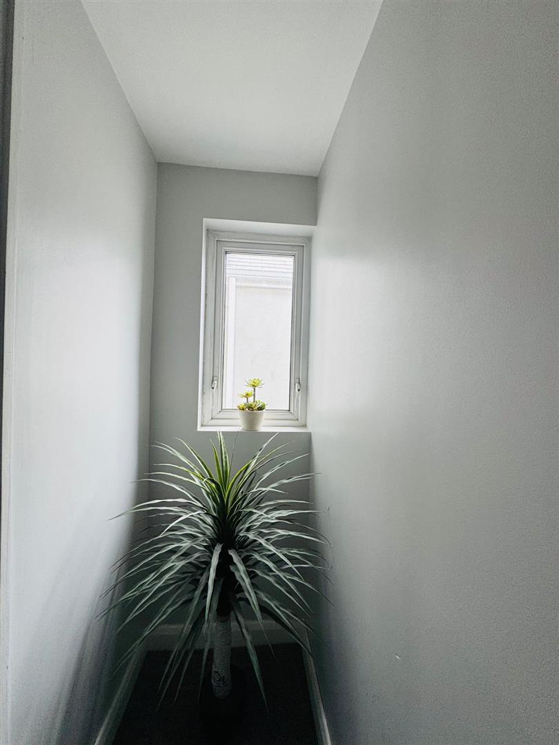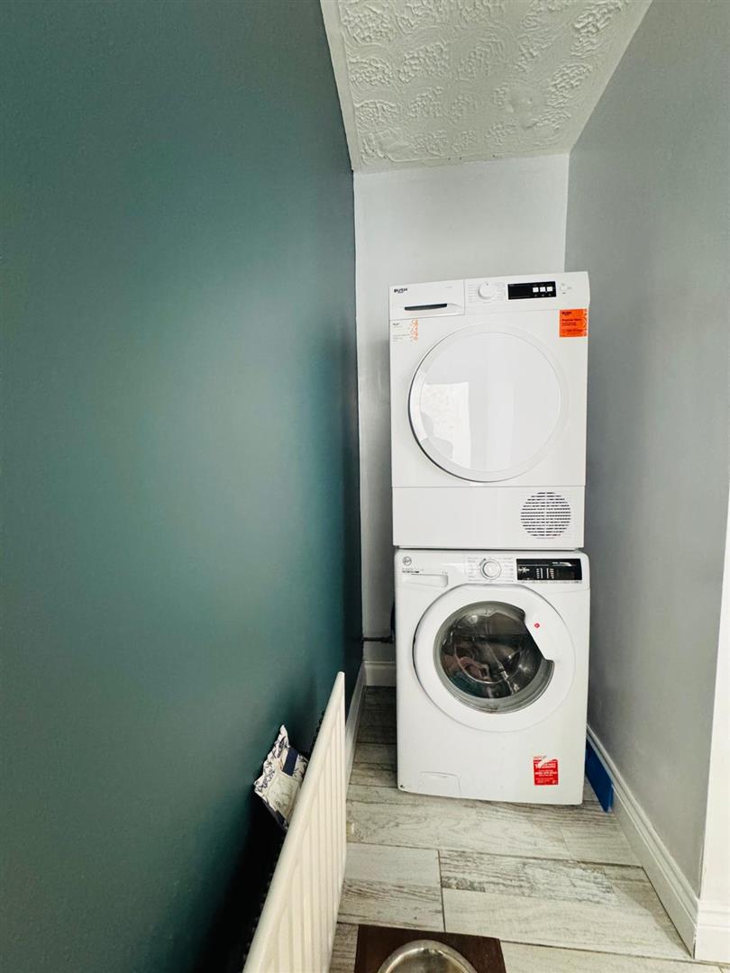 Plumbed for washing machine, space for tumble dryer, tiled floor.