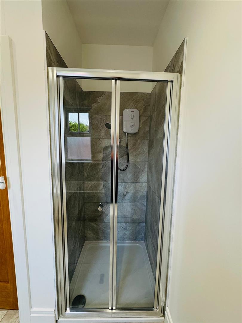 Comprising tiled walk in shower, whb and wc, tiled floor.