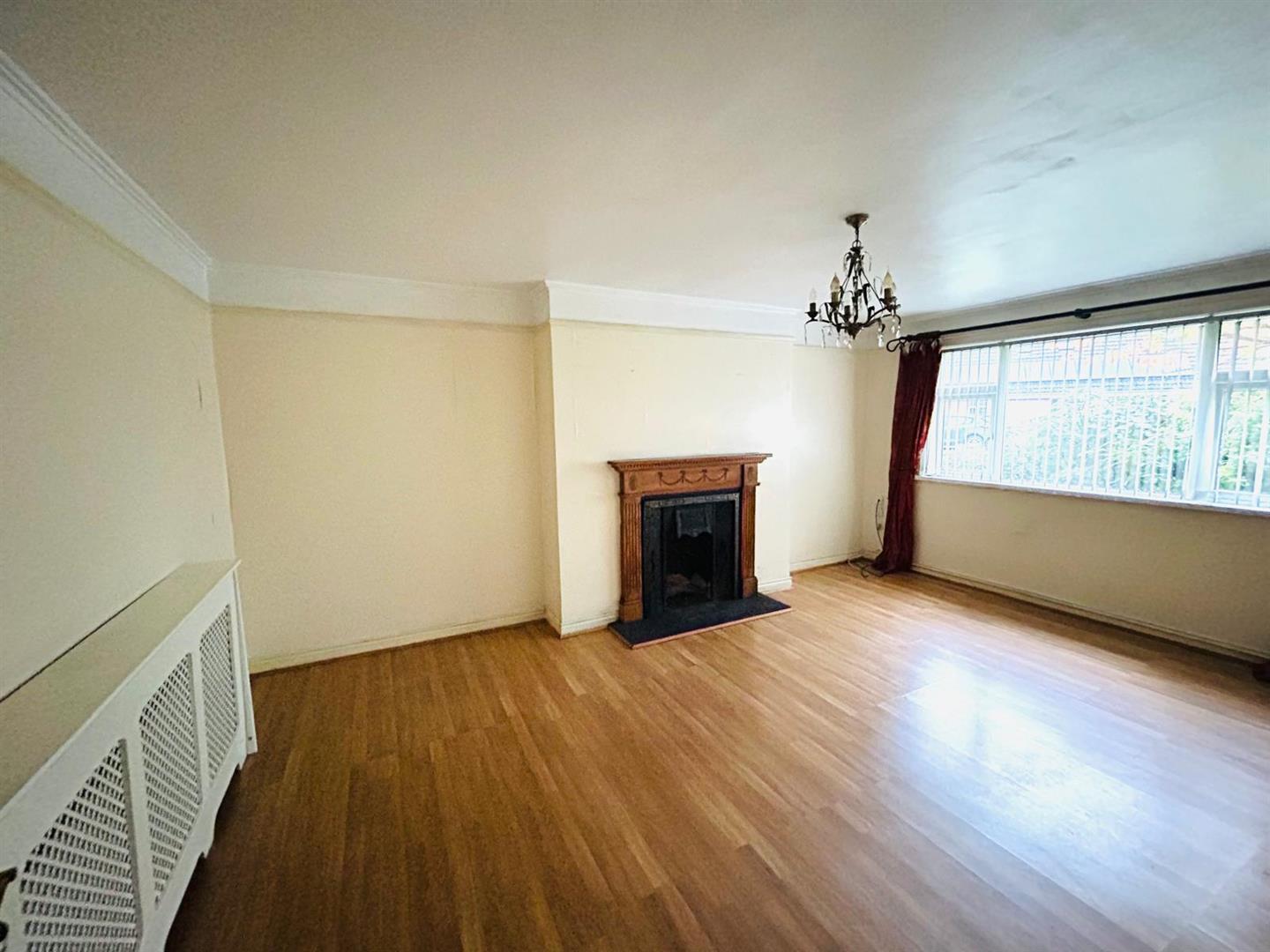 Having fireplace with cast iron inset and tiled hearth, laminated wooden floor.