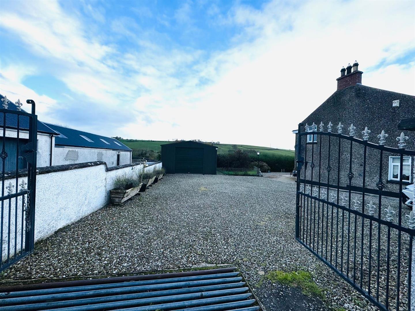 Gravel driveway leading to Garage.