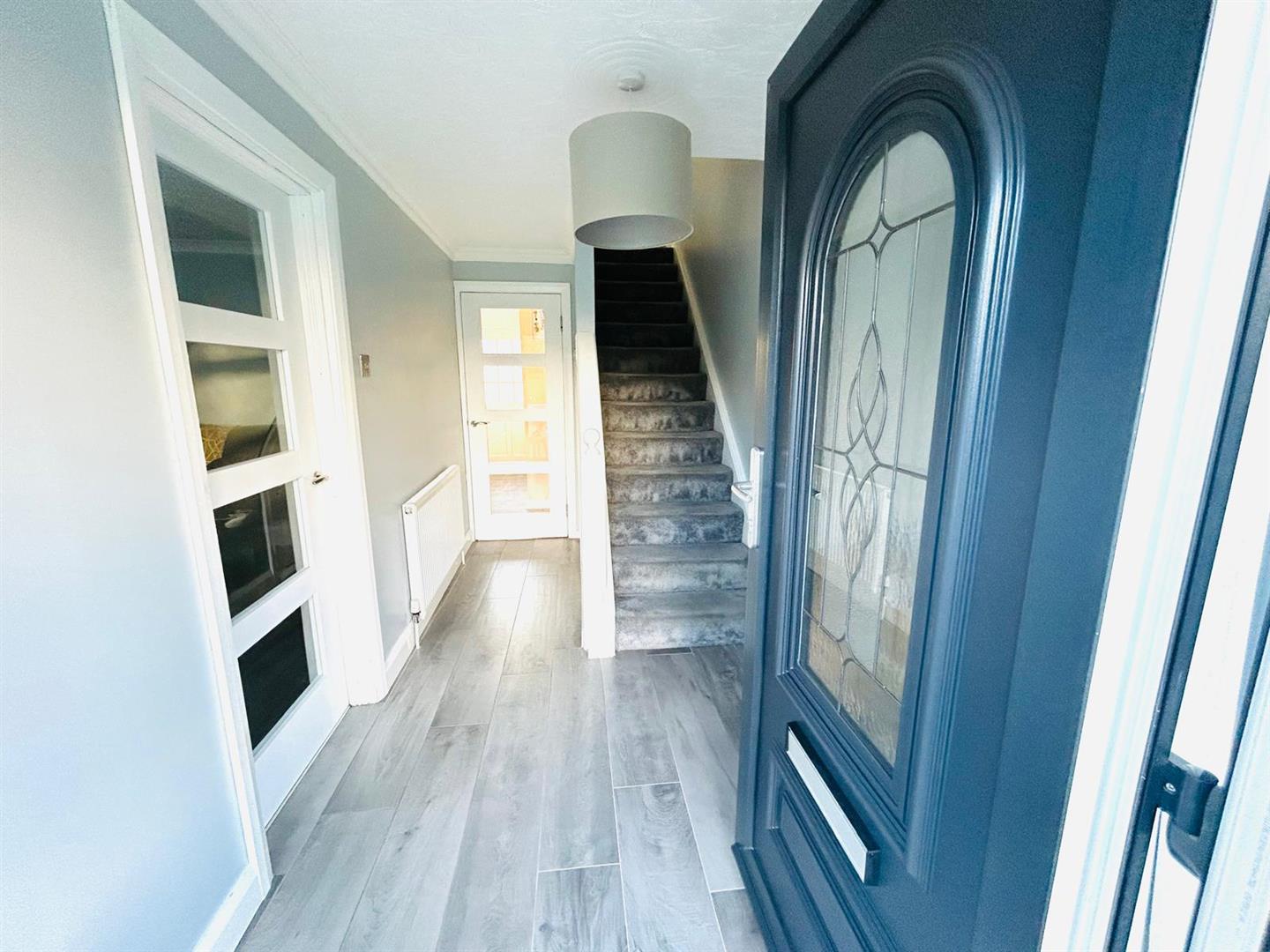 Having understairs storage, ceiling cornicing, tiled floor, glass door to Kitchen.