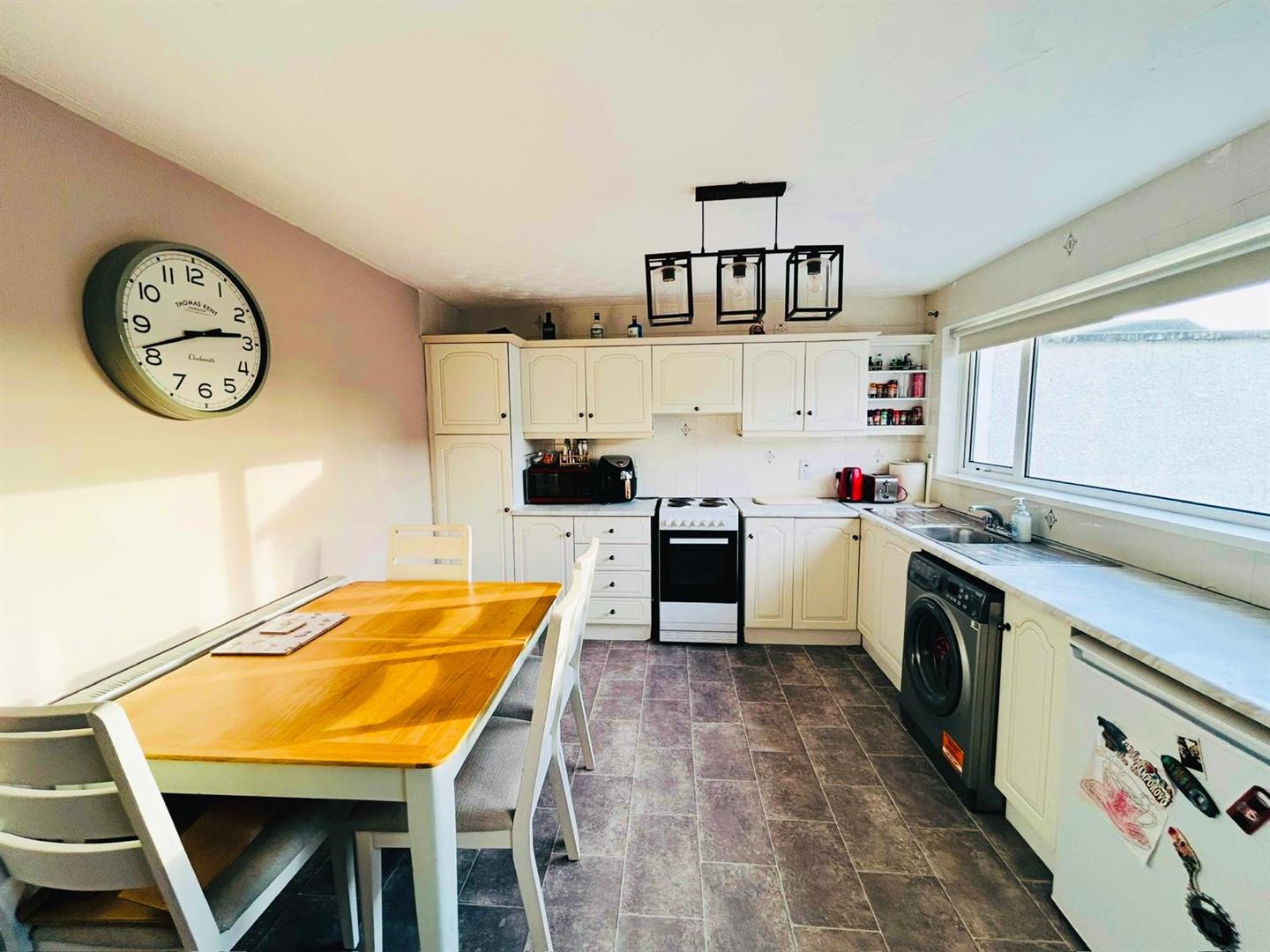 Having eye and low level units, tiling between units, double drainer stainless steel sink unit with mixer taps, wired for cooker, plumbed for washing machine, space for fridge/freezer.