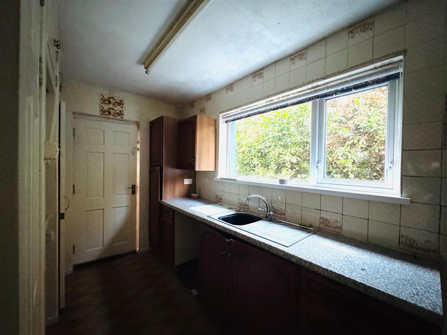 Having eye and low level units, single drainer stainless steel sink unit with mixer taps, wired for cooker, plumbed for washing machine, hotpress, larder, tiled floor.