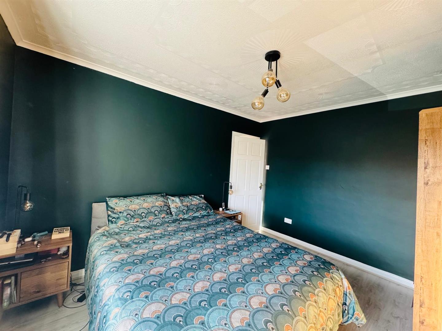 Having double built in wardrobes, ceiling cornicing, laminated wooden floor.