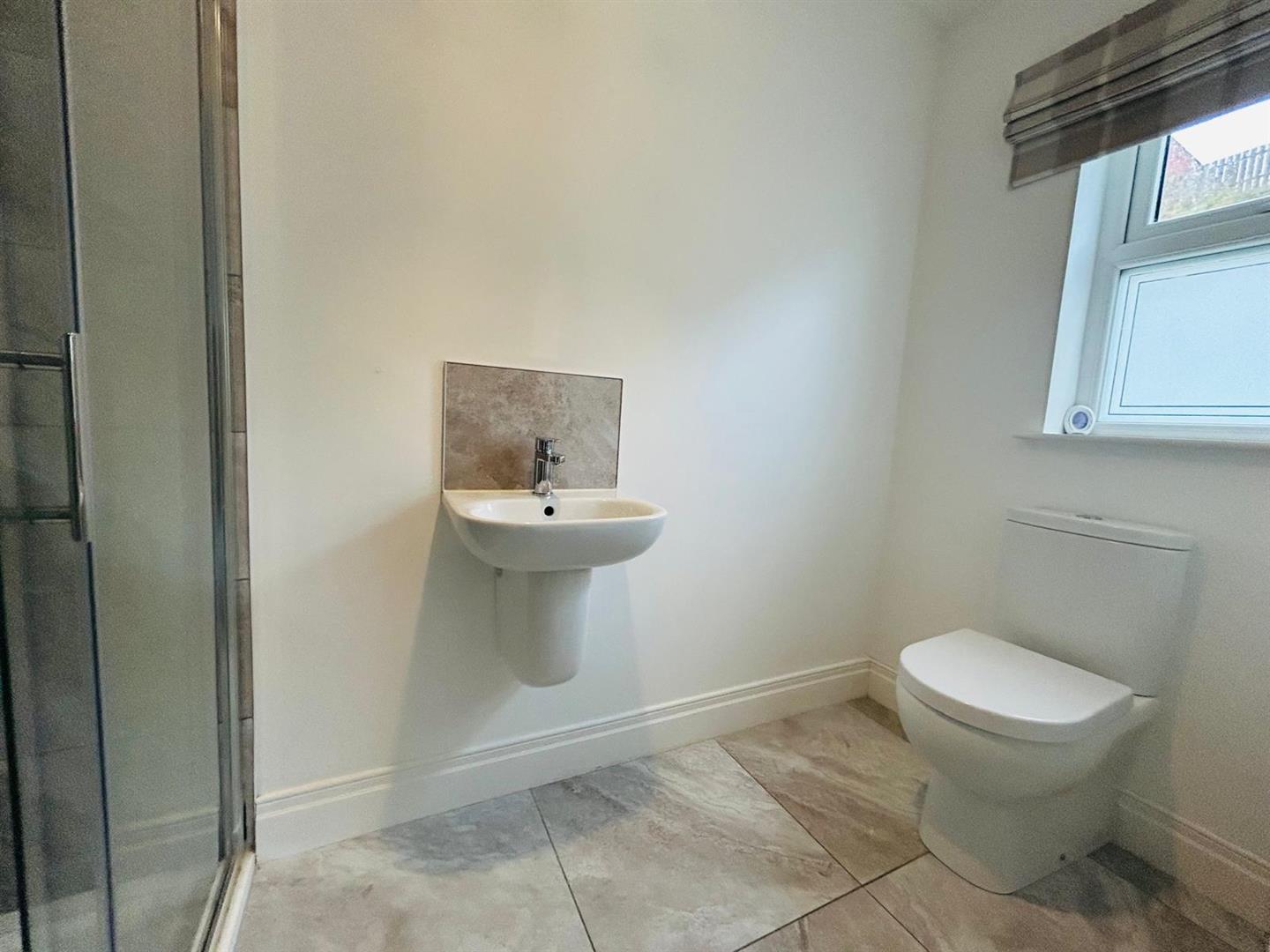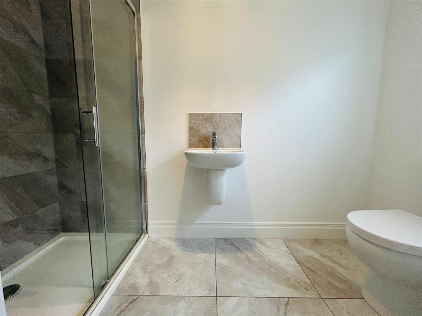 Comprising fully tiled walk in shower, whb and wc, tiled floor.
