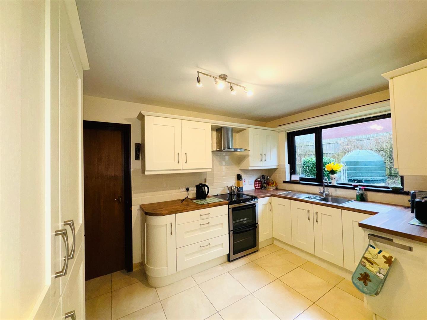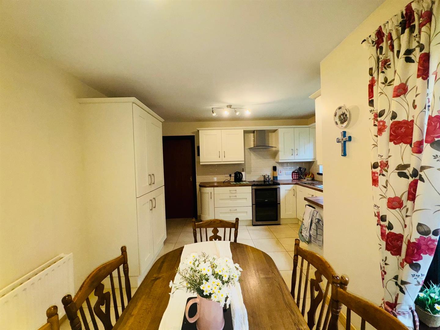 Having range of eye and low level units, tiling between units, 1 1/2 bowl stainless steel sink unit with mixer taps, wired for cooker, stainless steel extractor hood, integrated fridge/freezer, tiled floor, ample dining space.