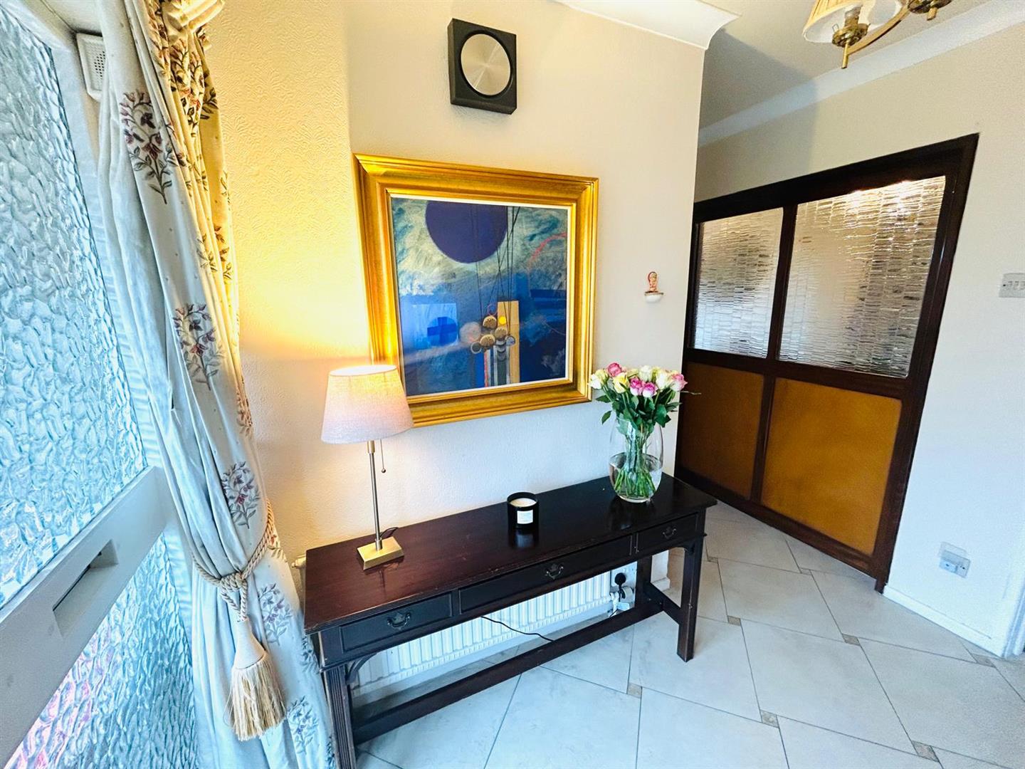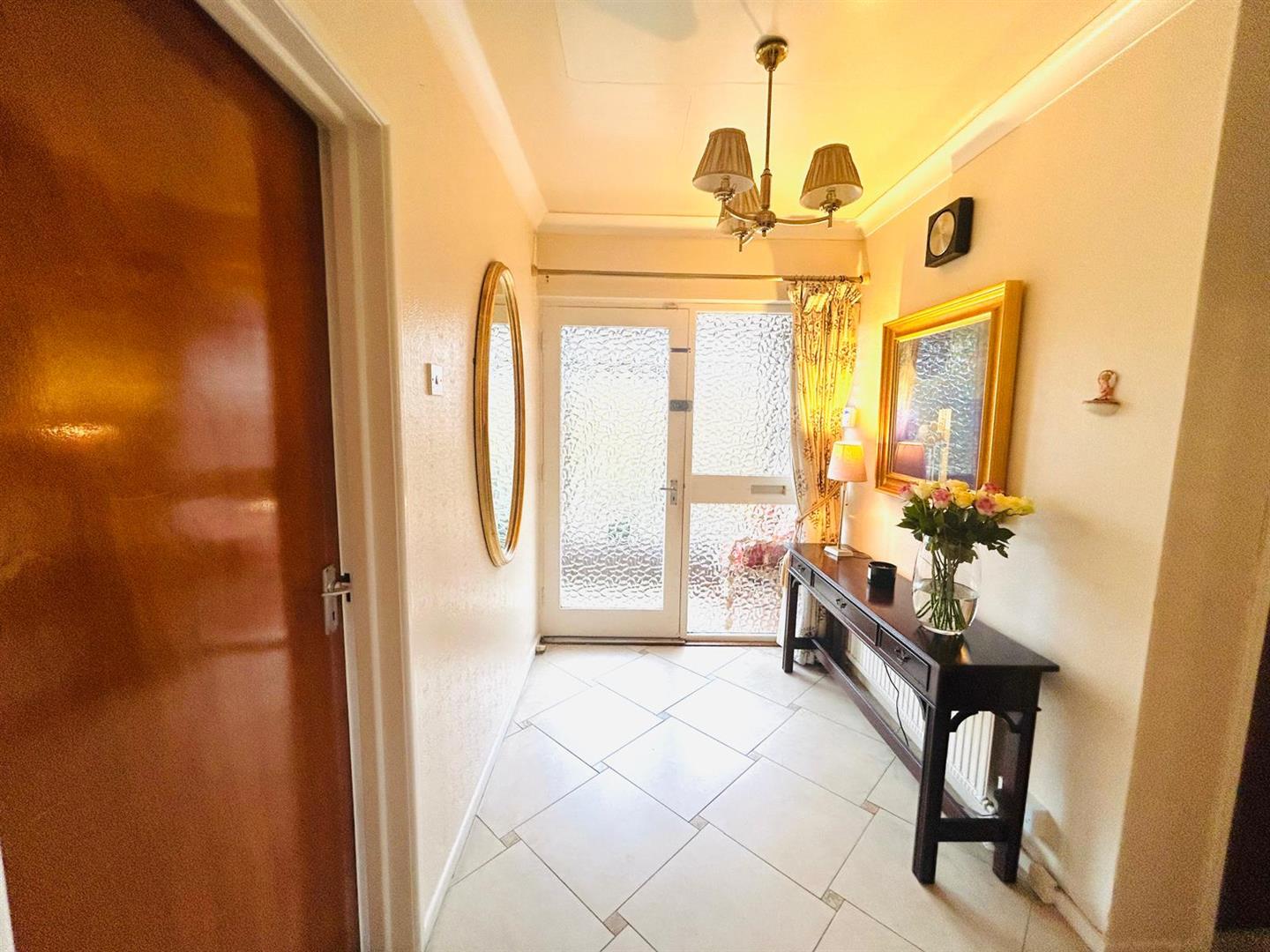 Having walk in cloaks cupboard, storage cupboard, ceiling cornicing and tiled floor.