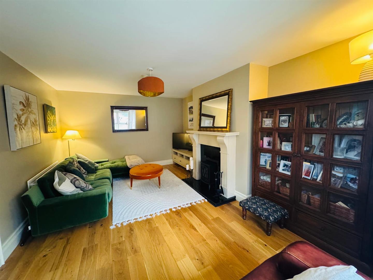 Having attractive fireplace and wooden floor.