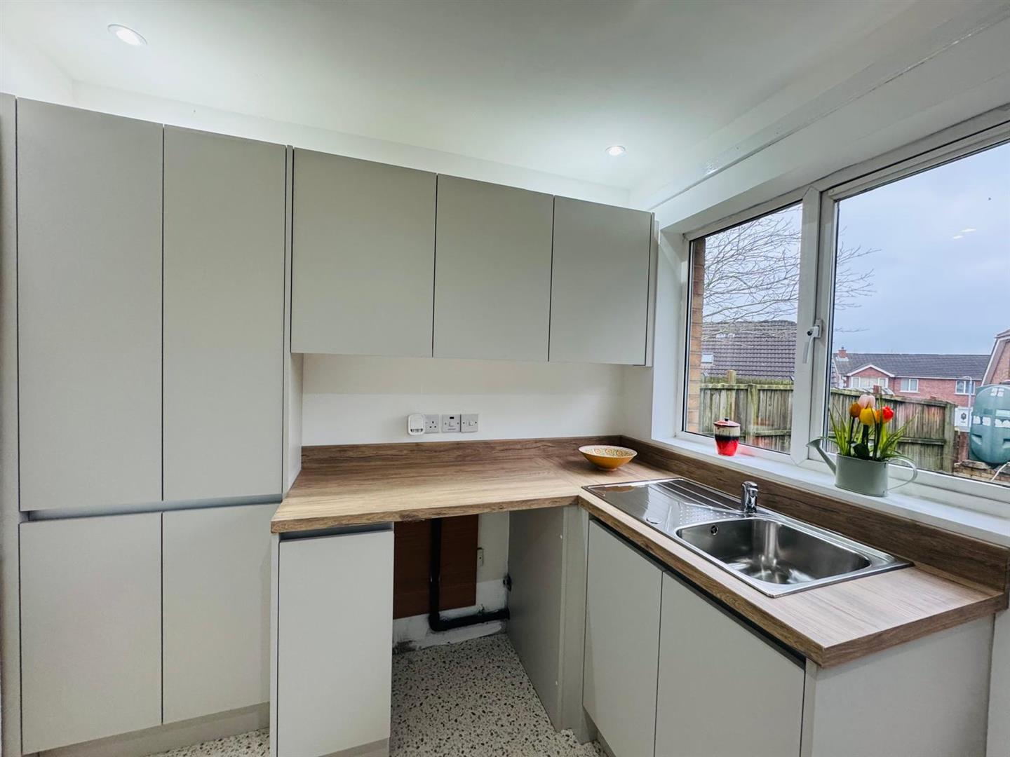 Having range of eye and low level units, single drainer stainless steel sink unit with mixer taps, hob, underoven, stainless steel extractor hood, plumbed for washing machine, space for fridge/freezer.