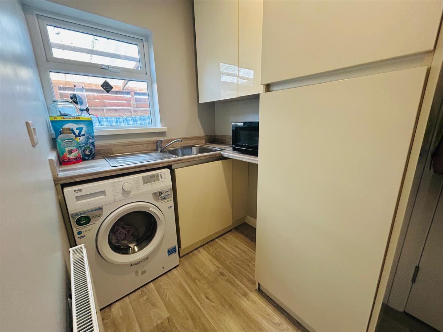 Having eye and low level units, single drainer stainless steel sink unit with mixer taps, plumbed for washing machine.