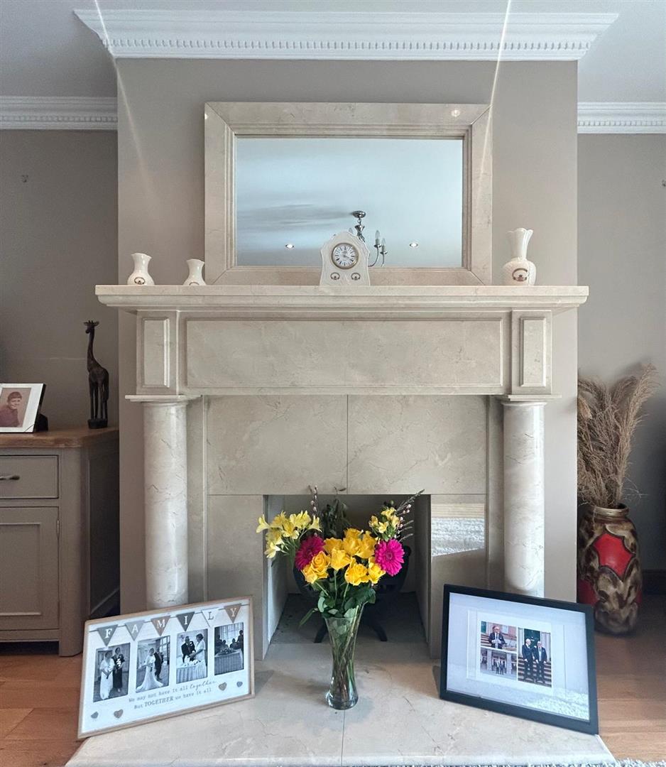 Having attractive fireplace, ceiling cornicing and recessed lighting.