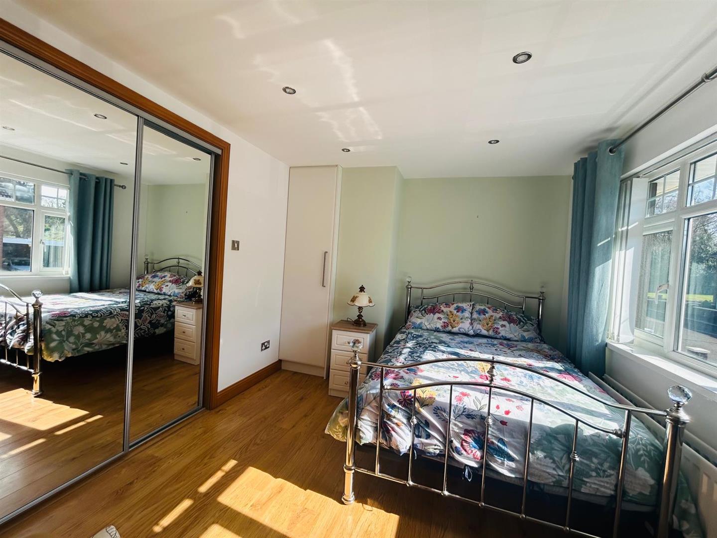 Having built in wardrobes with sliding mirrored doors, recessed lighting and laminated wooden floor.