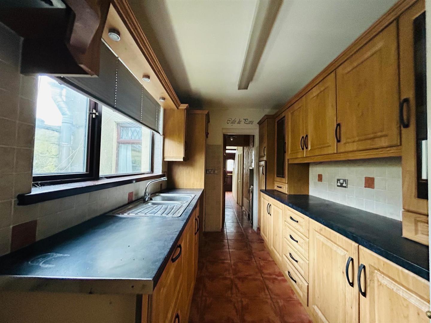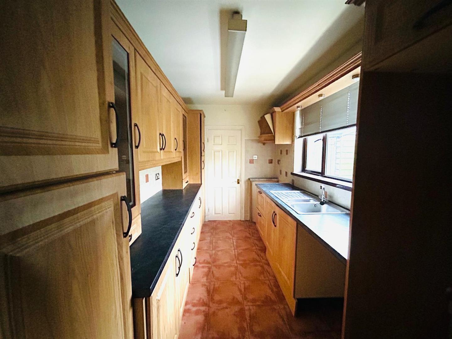 Having eye and low level units, tiling between units, 1 1/2 bowl stainless steel sink unit with mixer taps, space for fridge/freezer, plumbed for washing machine, wired for cooker, extractor fan, hotpress with storage over and tiled floor.