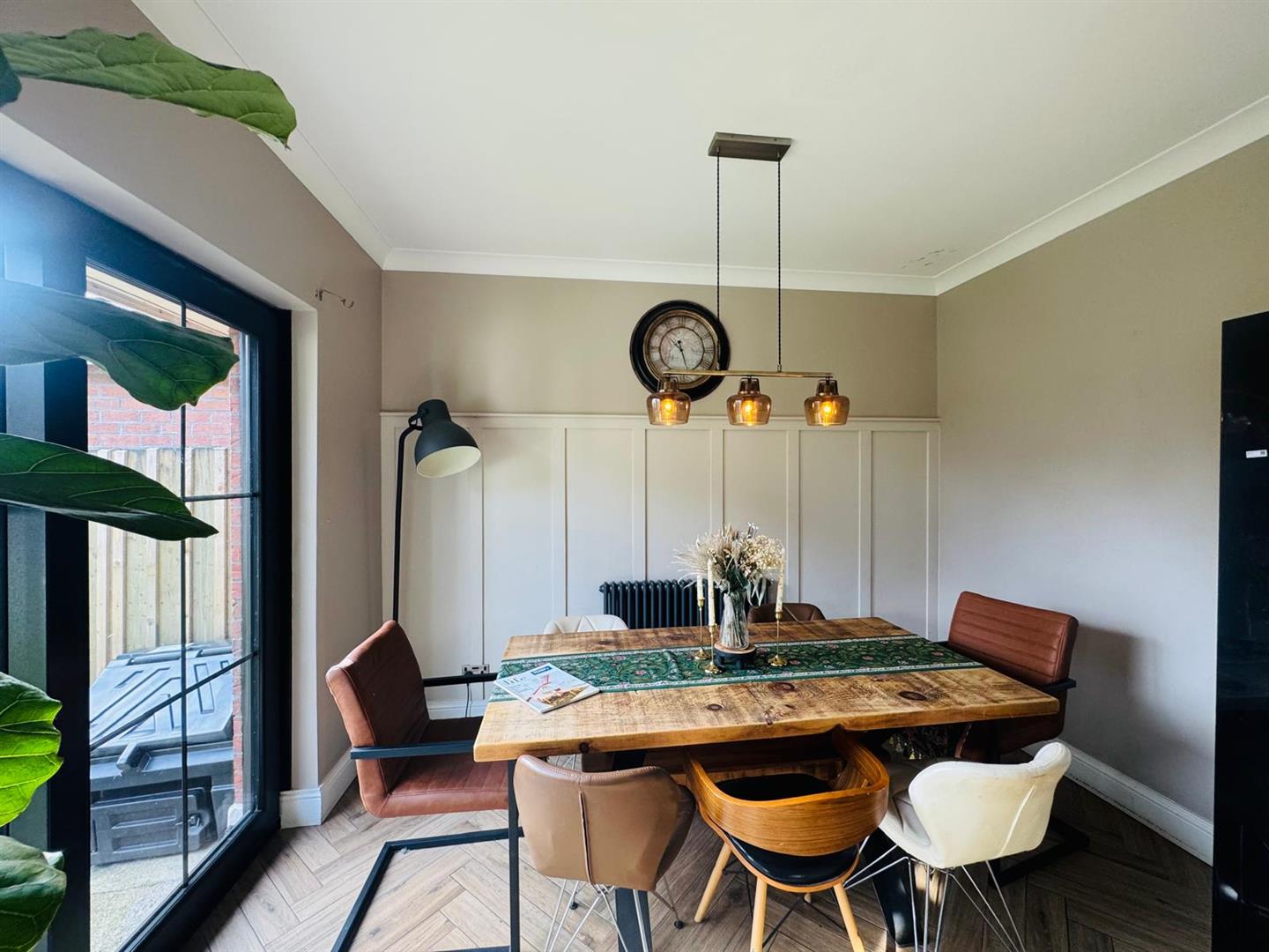 Having attractive fireplace, feature panelled wall, ceiling cornicing and centre rose, 'Herringbone' style laminated wooden floor.