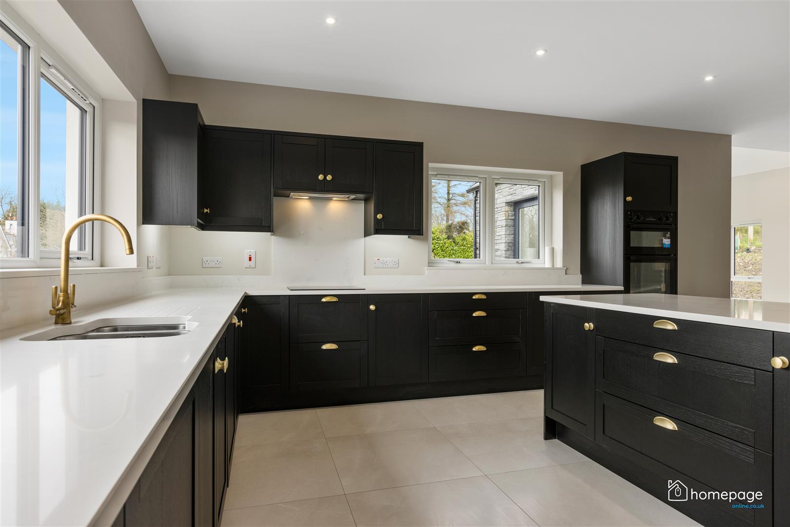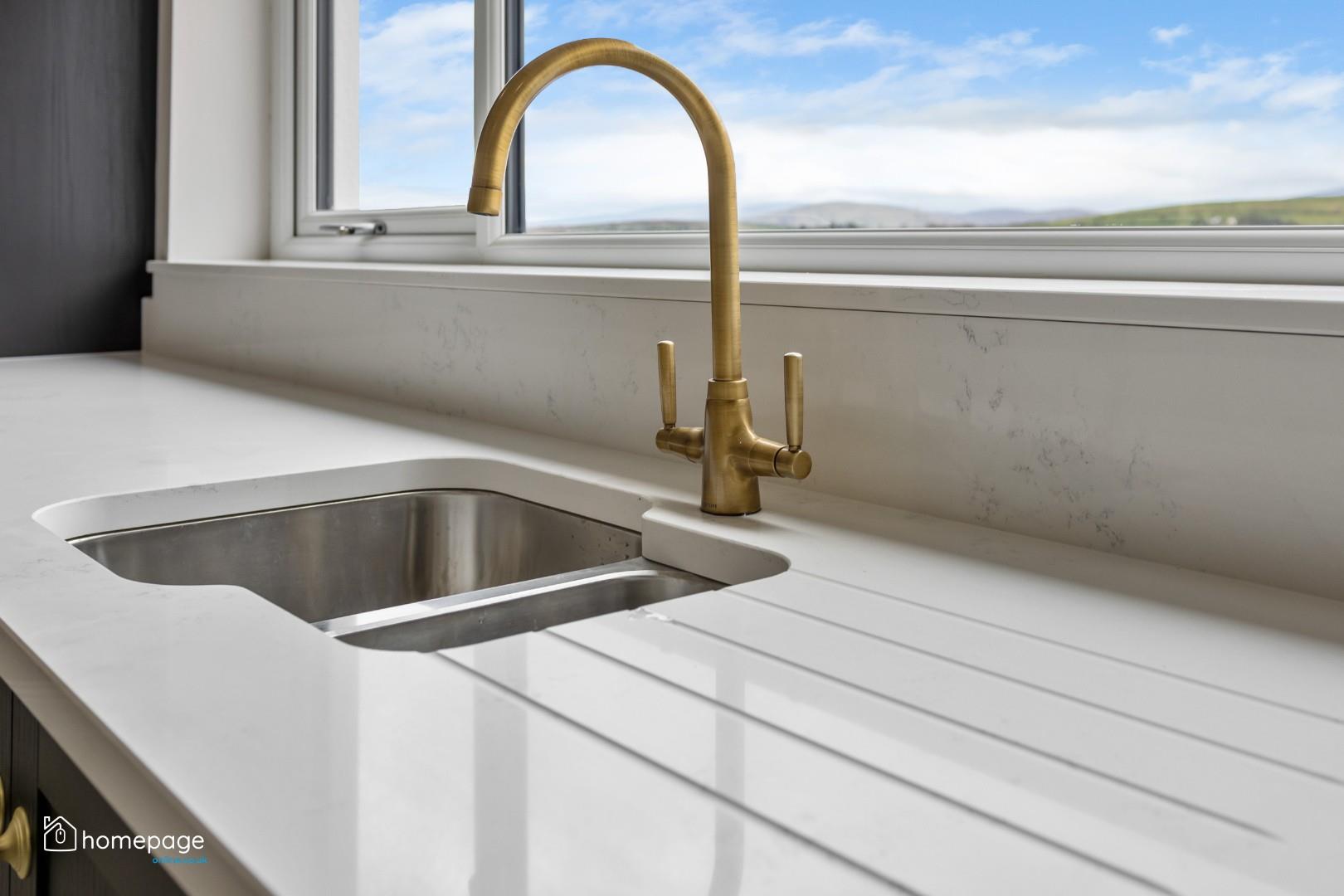 Bespoke fitted kitchens with quartz worktops, quartz upstands and undermount sink.