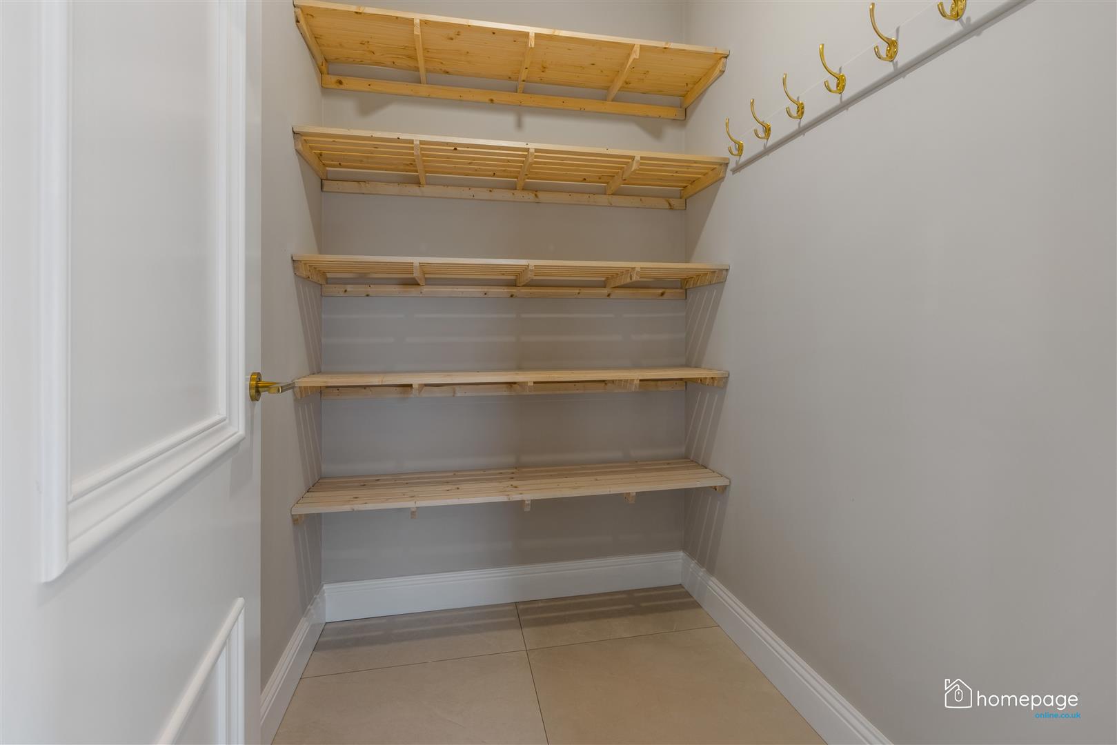 Solid 2 panel timber internal doors with gold handles.