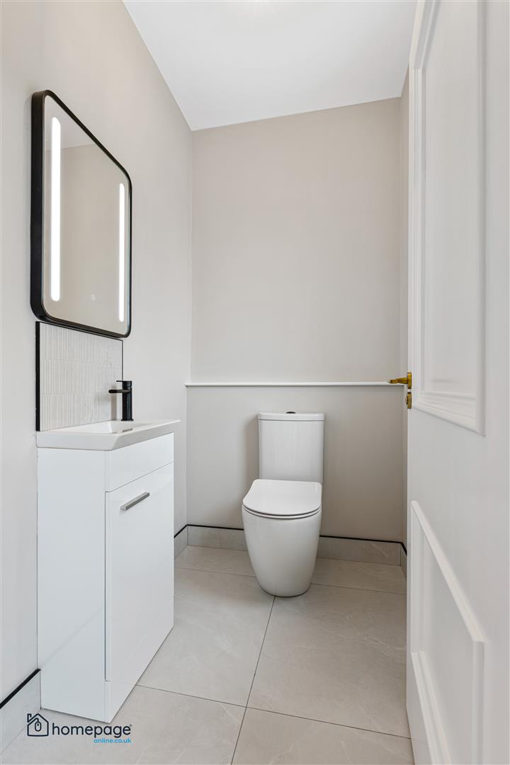 Separate boot room with shelving and coat hangers, W.C. leading to rear access to the property and patio area.