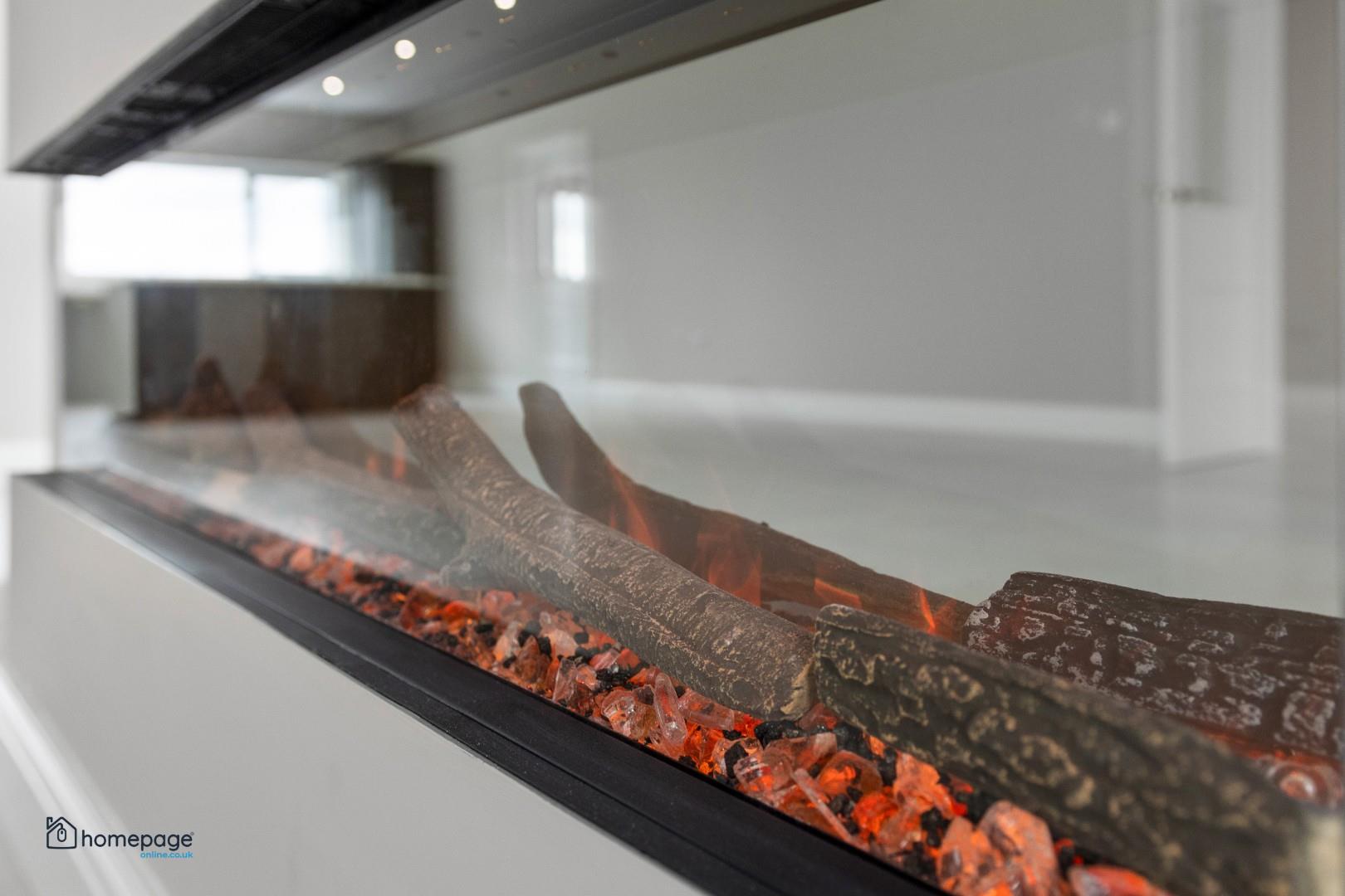 Media wall with modern electric inset fire and 55" TV included to living area