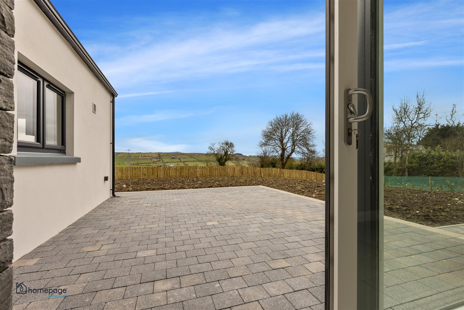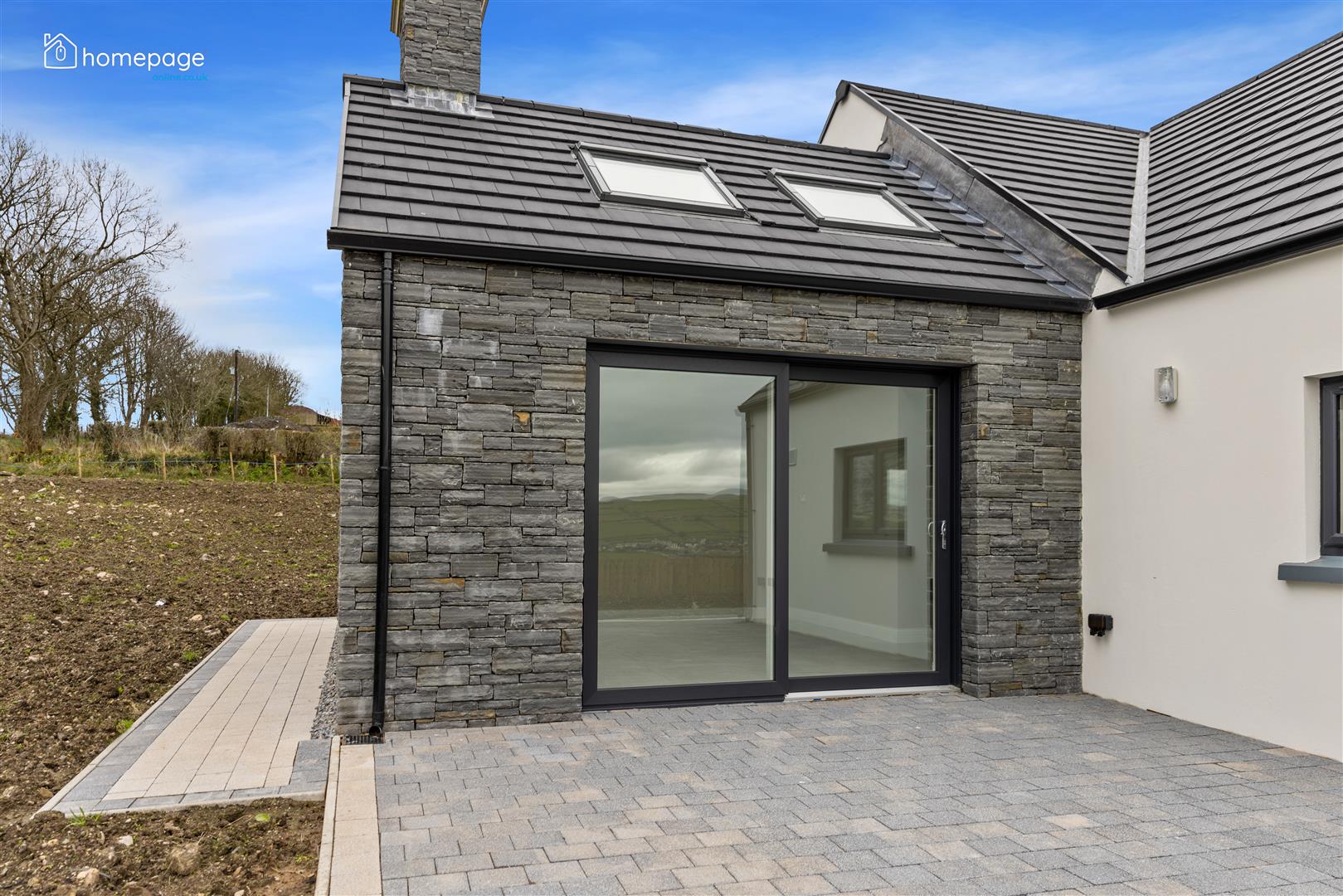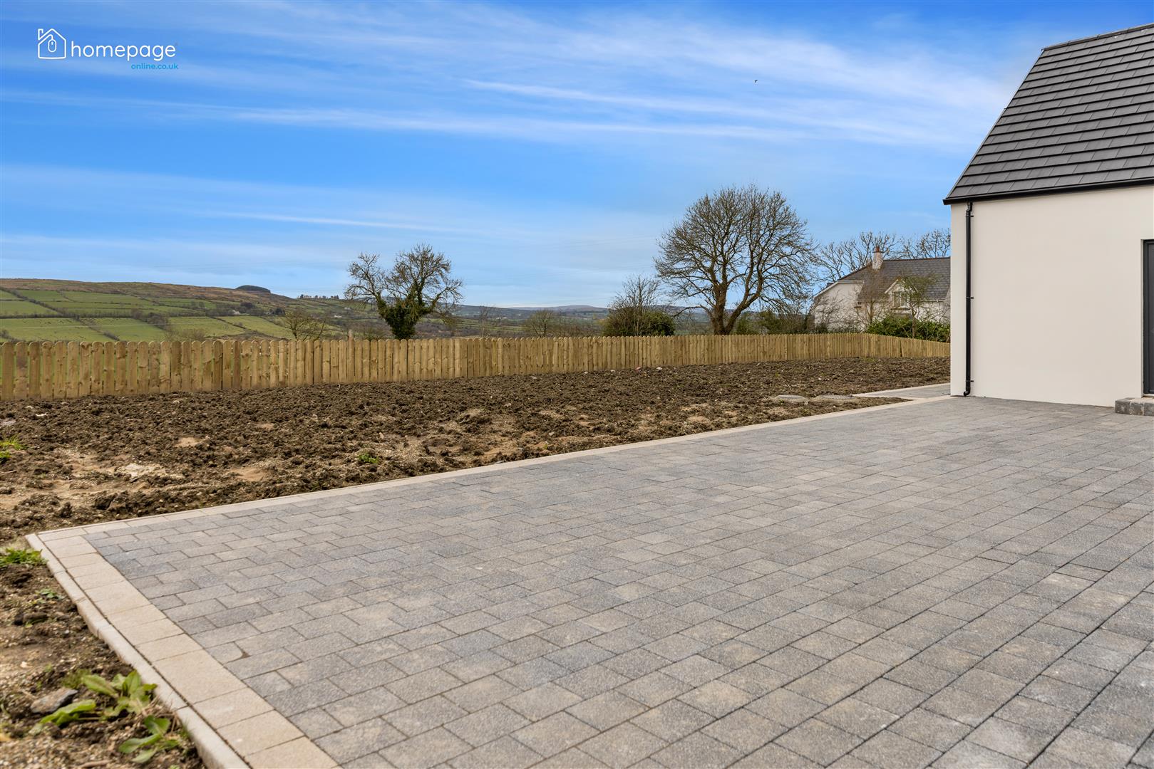 Tobermore paving to large patio areas at rear including walkway around perimeter.