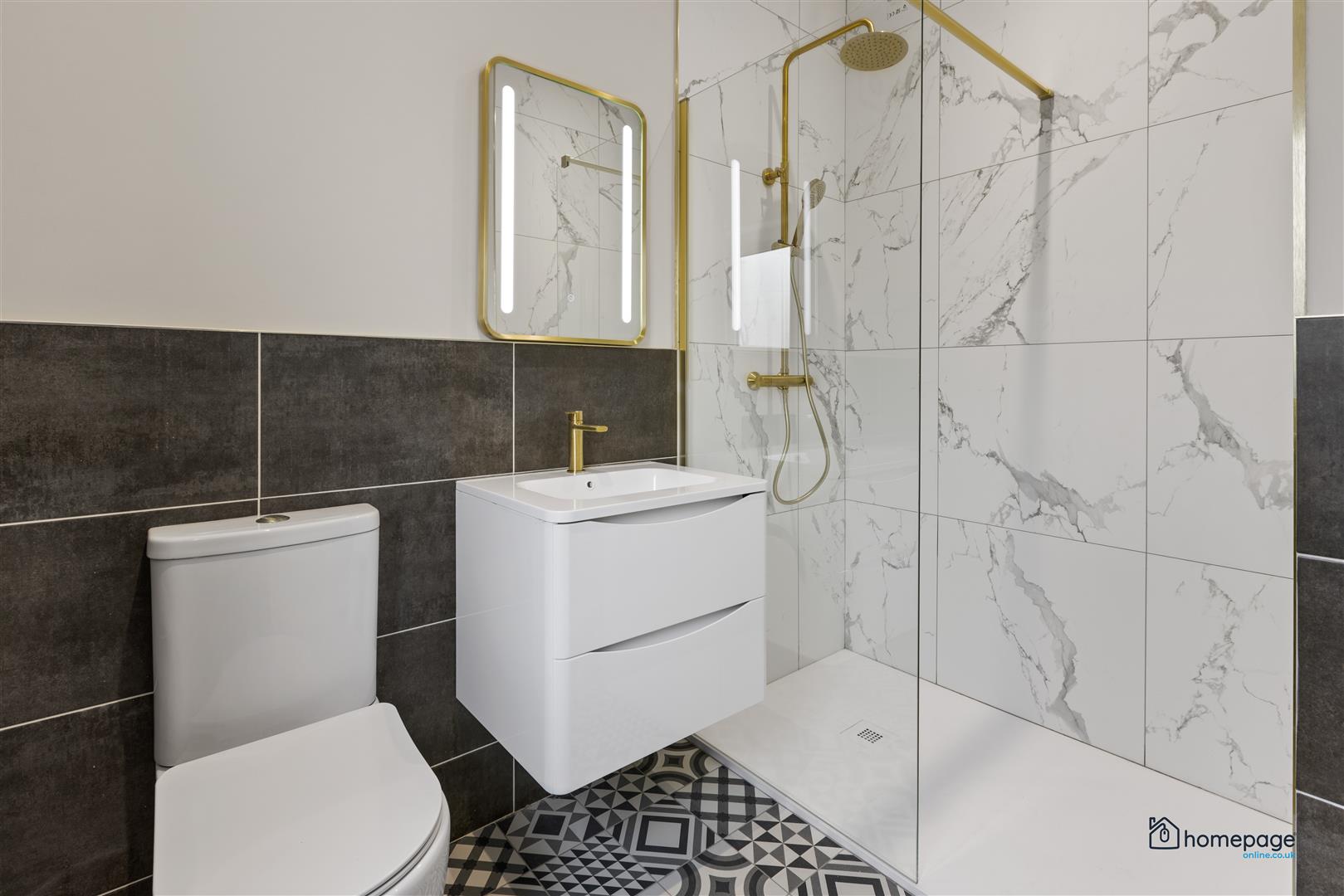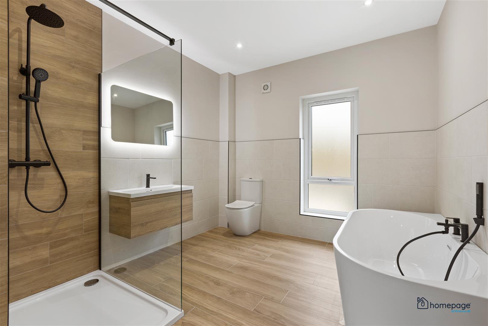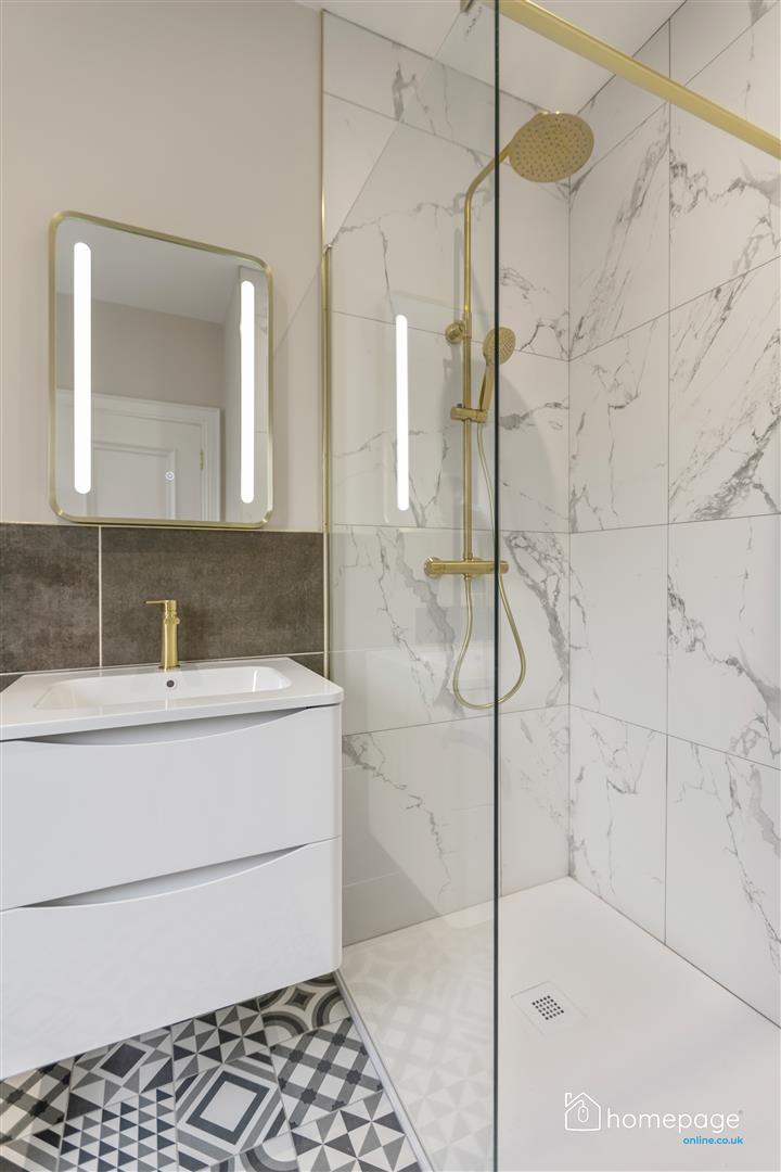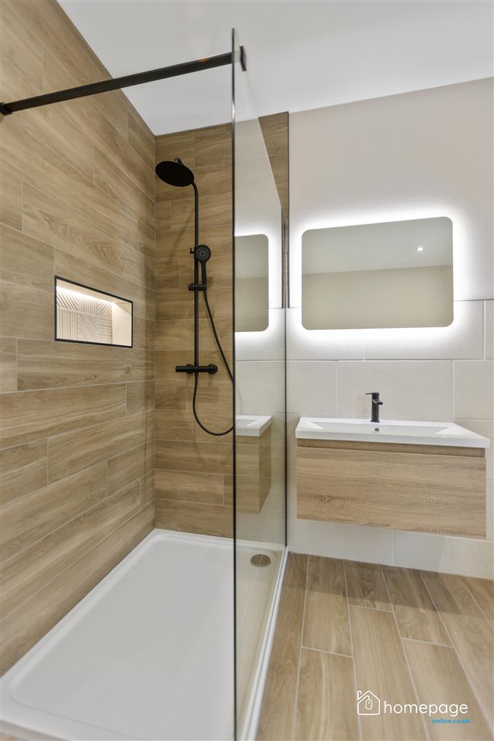 Quality floor and `wet room style´ wall tiling, and shower tray to bathroom.