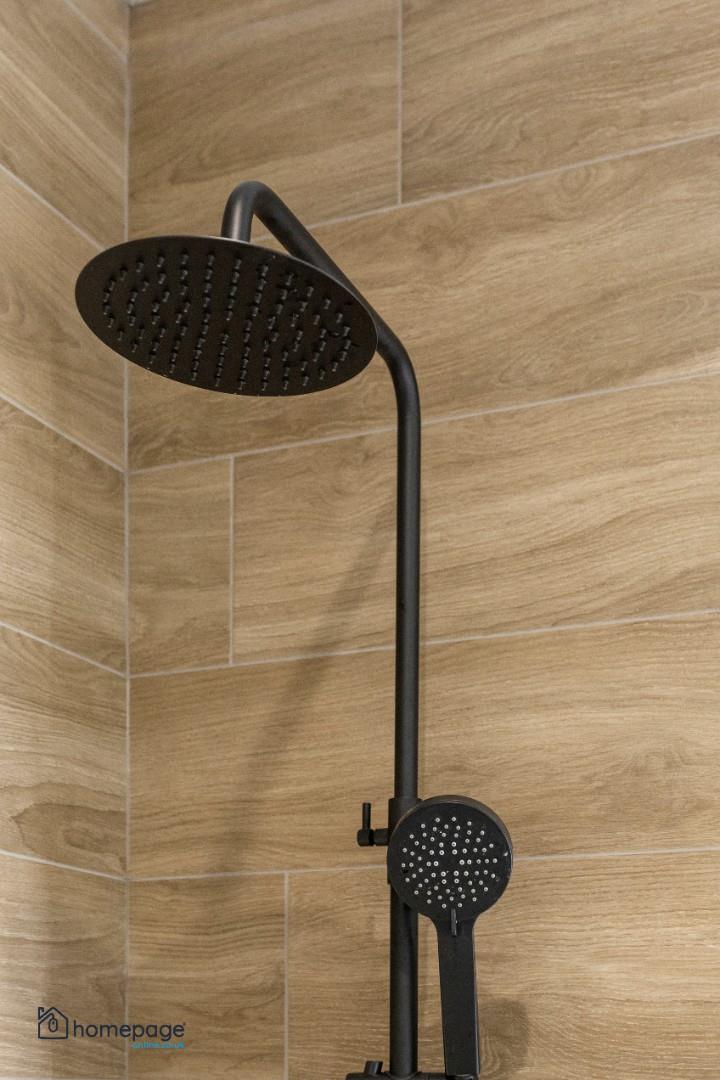 Pressurised water system with mains fed, rainfall style shower, to bathrooms.
