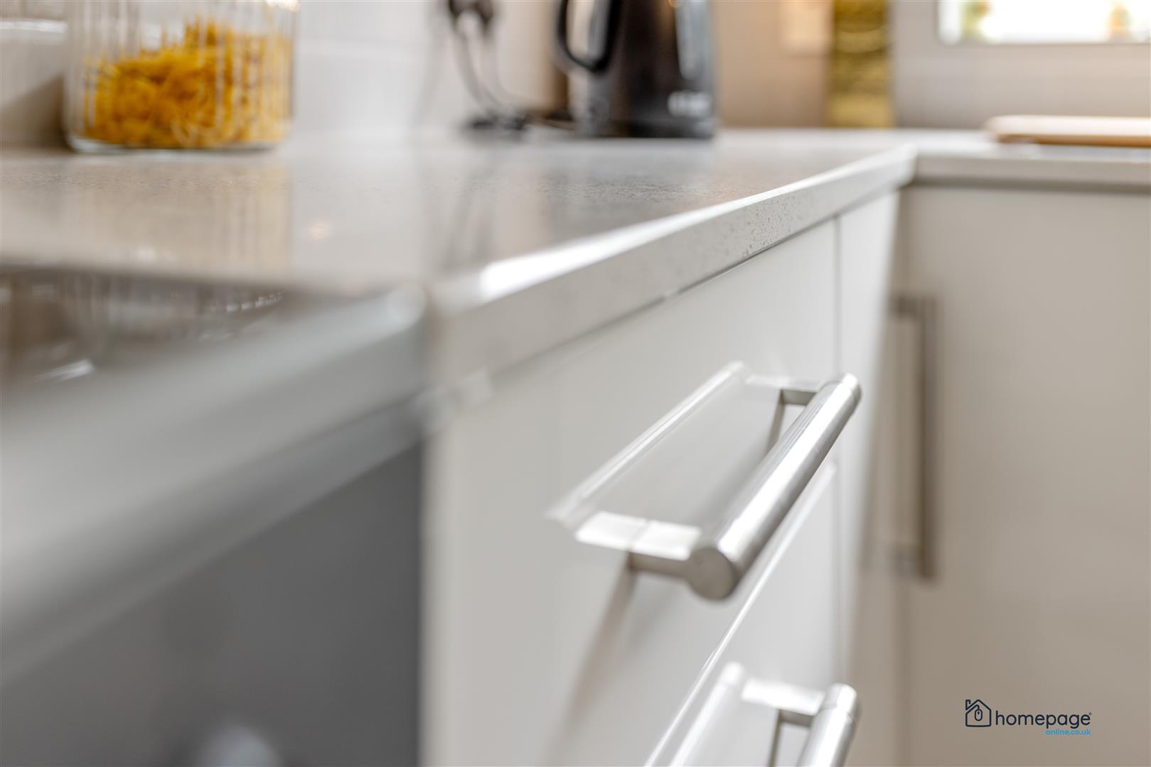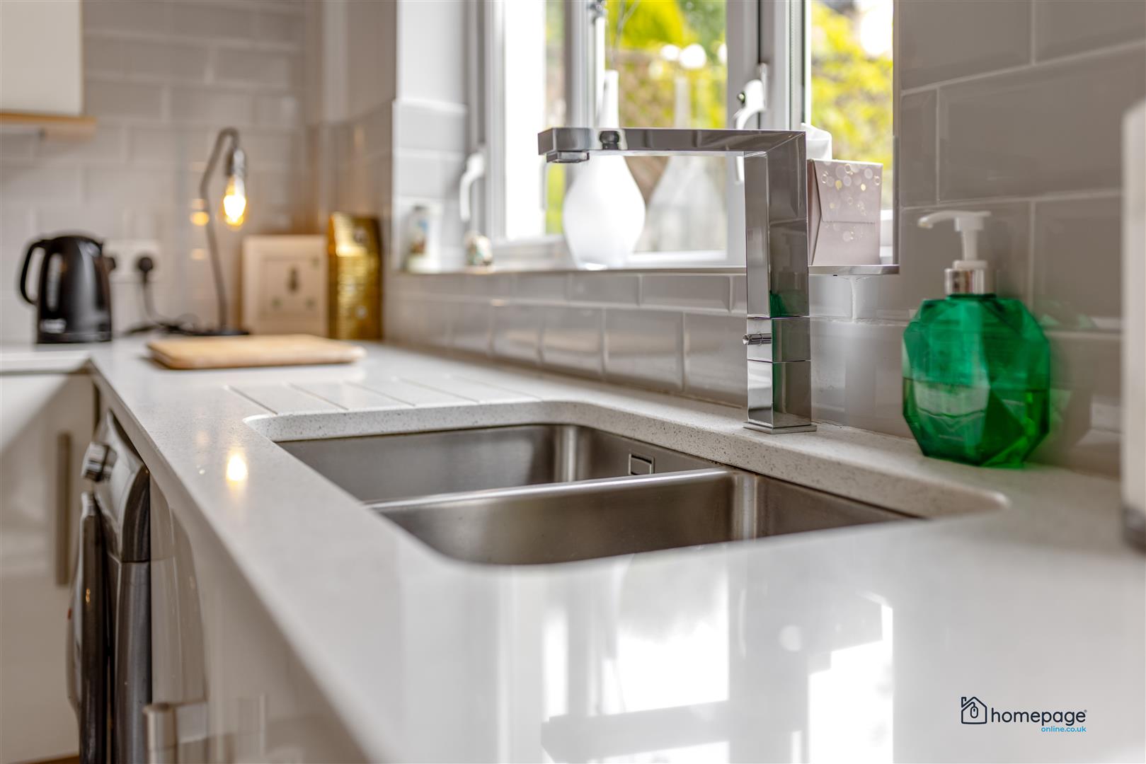 New kitchen fitted recently with quartz worktop, double sink & mixer tap