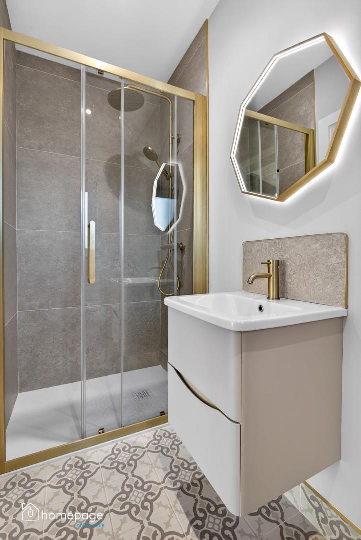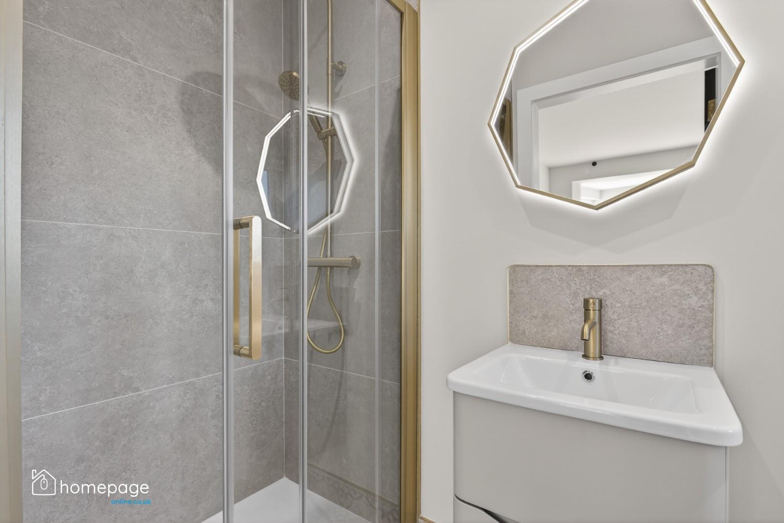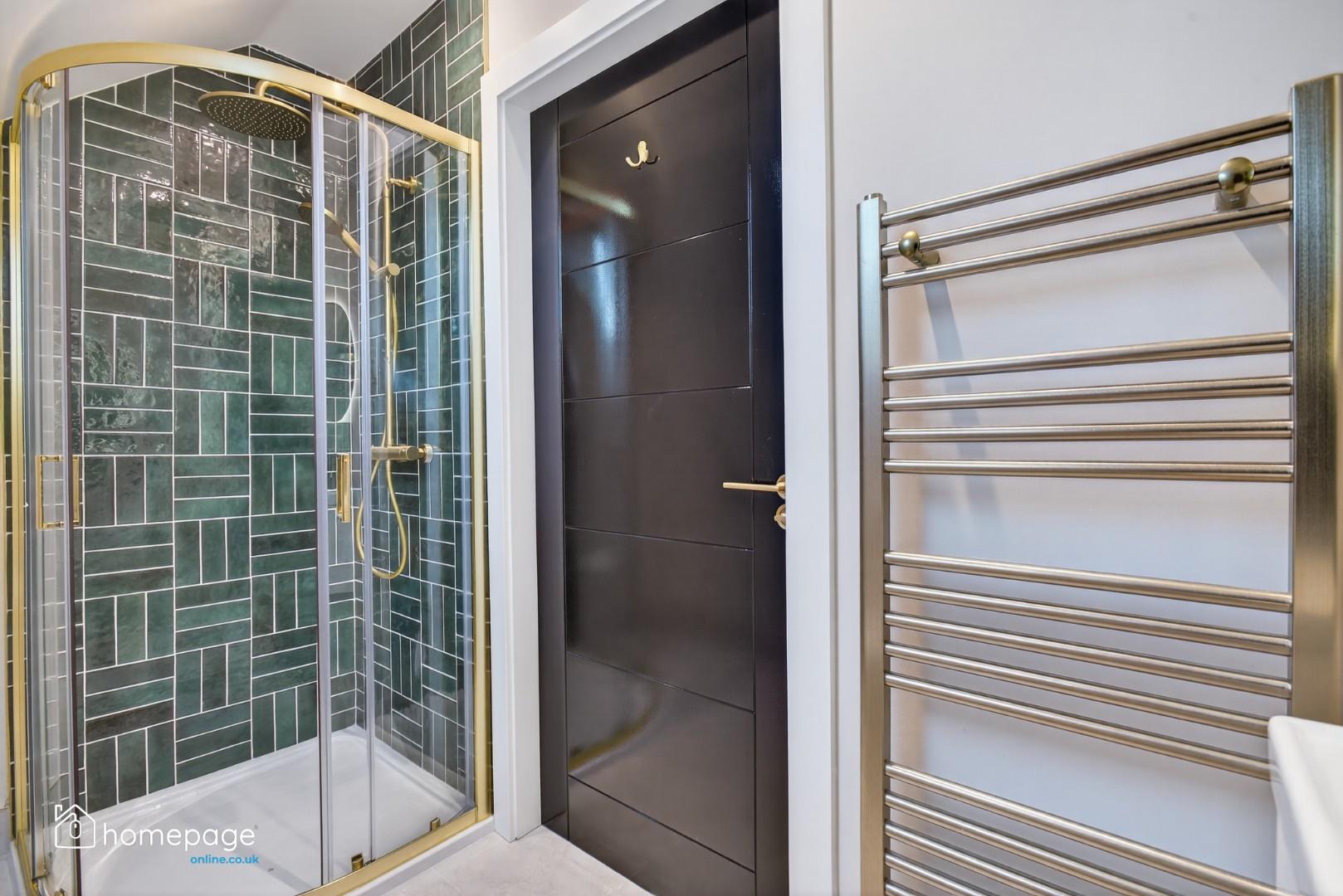 Pressurised water system with mains fed, rainfall style shower, to bathrooms.