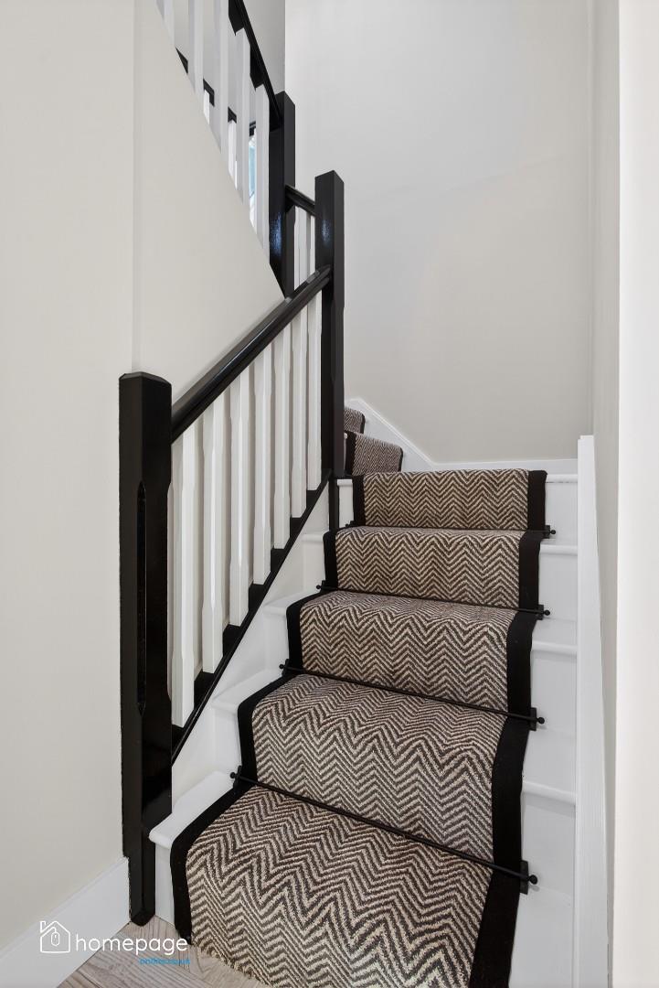Black wooden spindles to stairs and landing.
