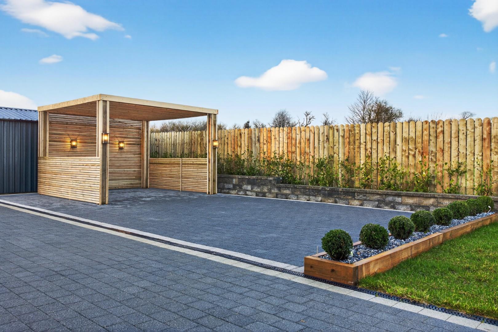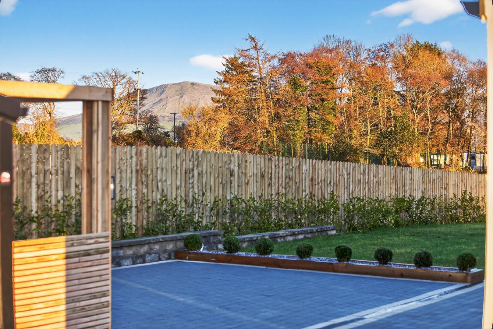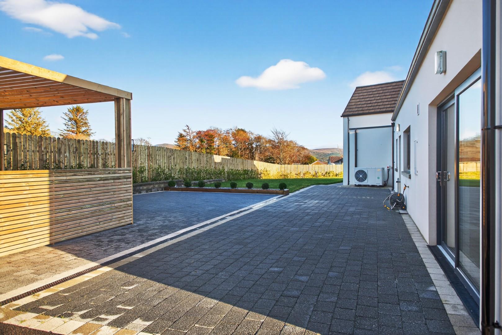 Tobermore paving to large patio areas at rear including walkway around perimeter.
