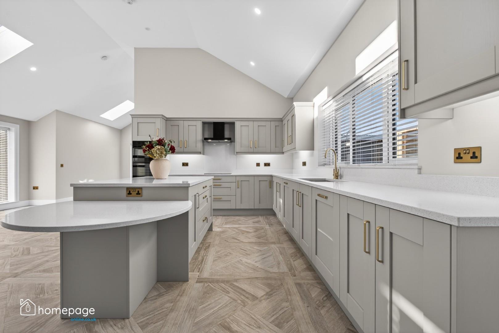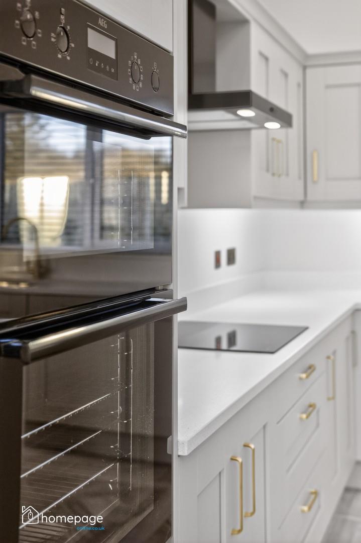 Bespoke fitted kitchens with quartz worktops, quartz upstands and undermount sink.