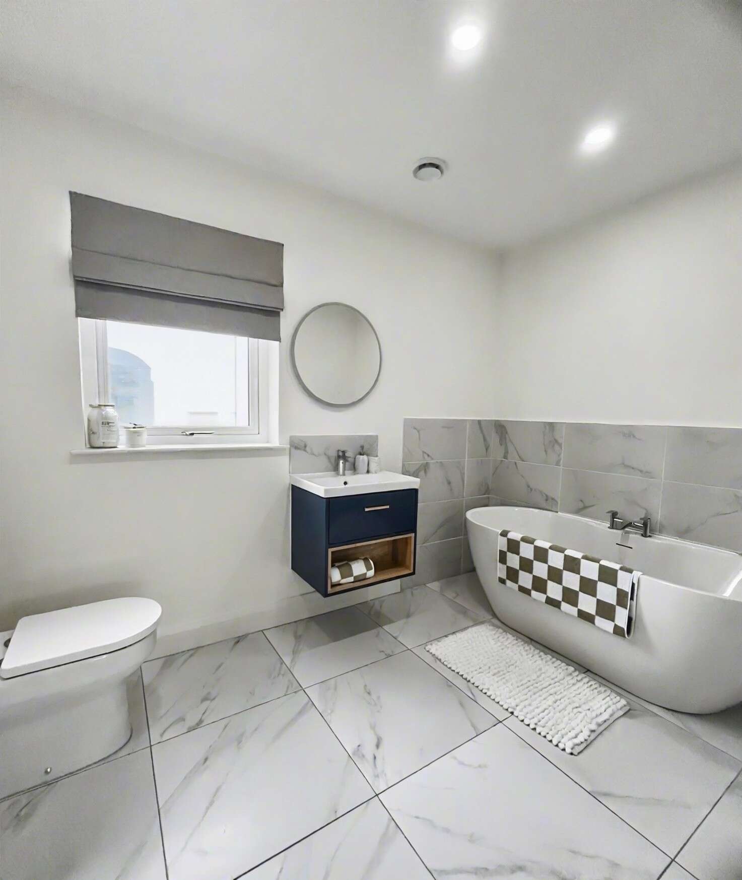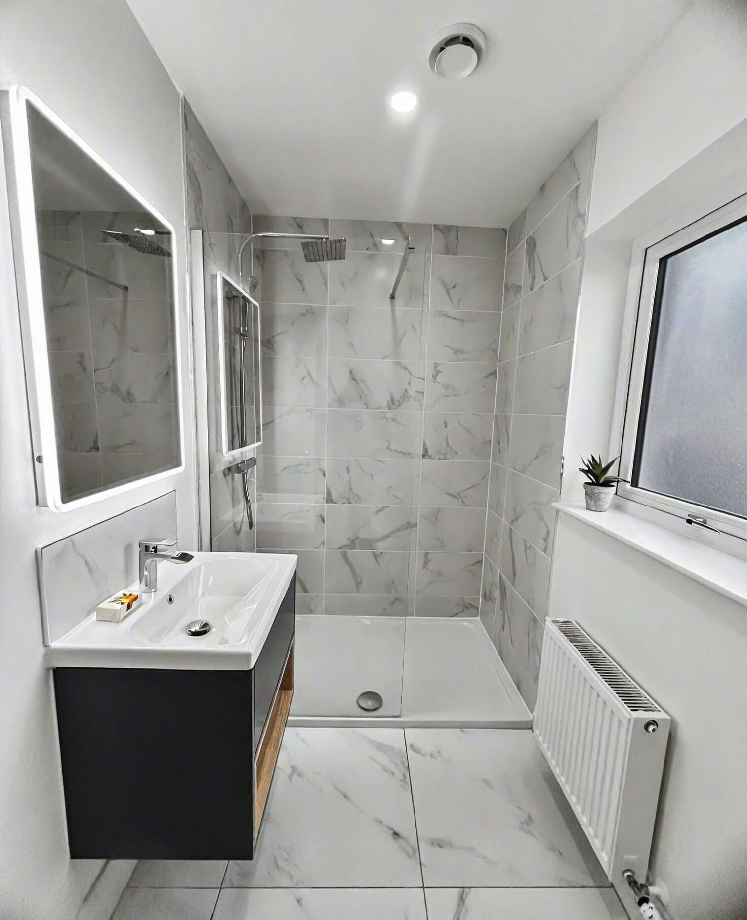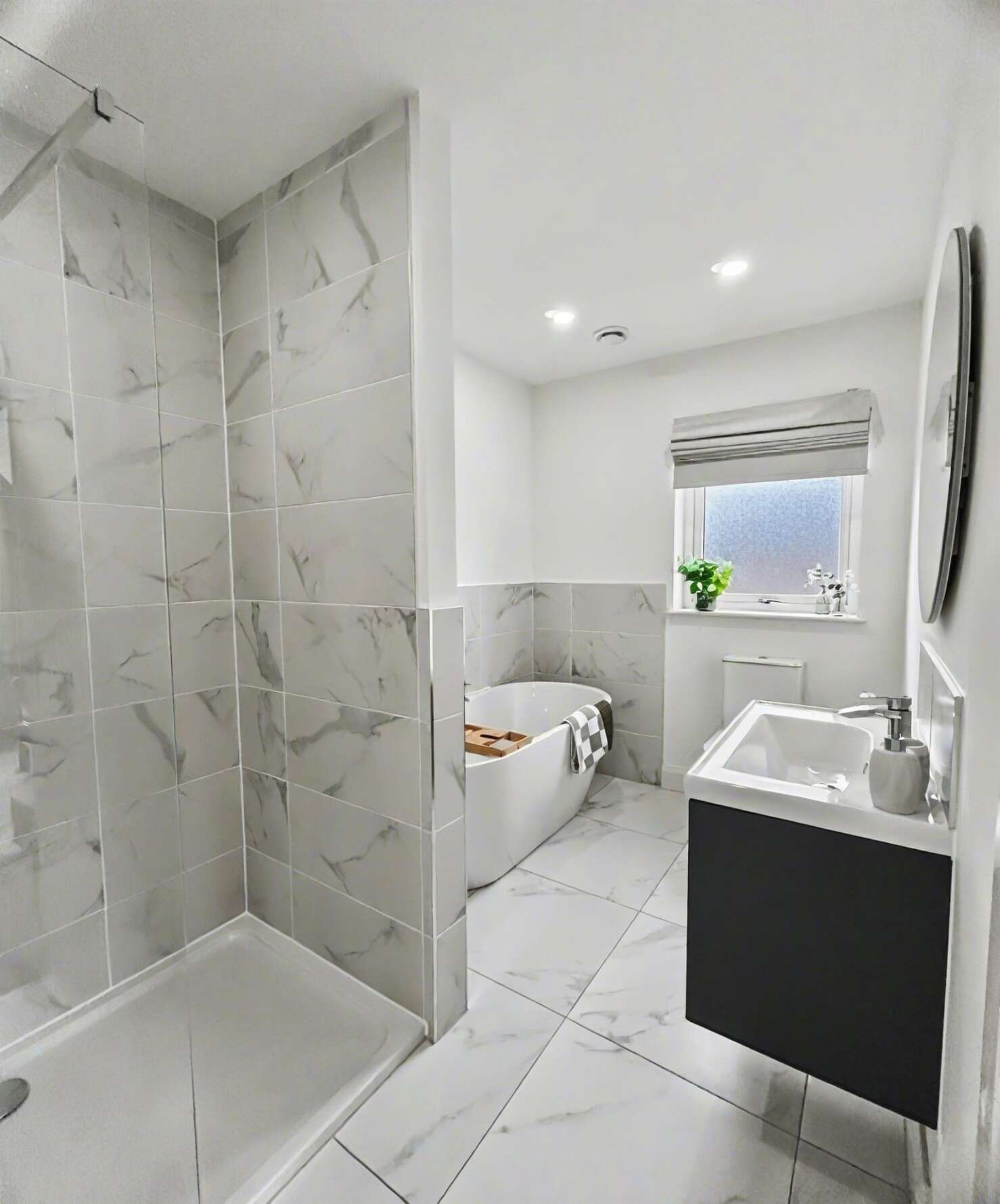 The master suite is a true standout, offering a spacious bedroom, a walk-in wardrobe, and a luxurious en-suite complete with freestanding bath and rain-head shower — creating a hotel-style retreat.