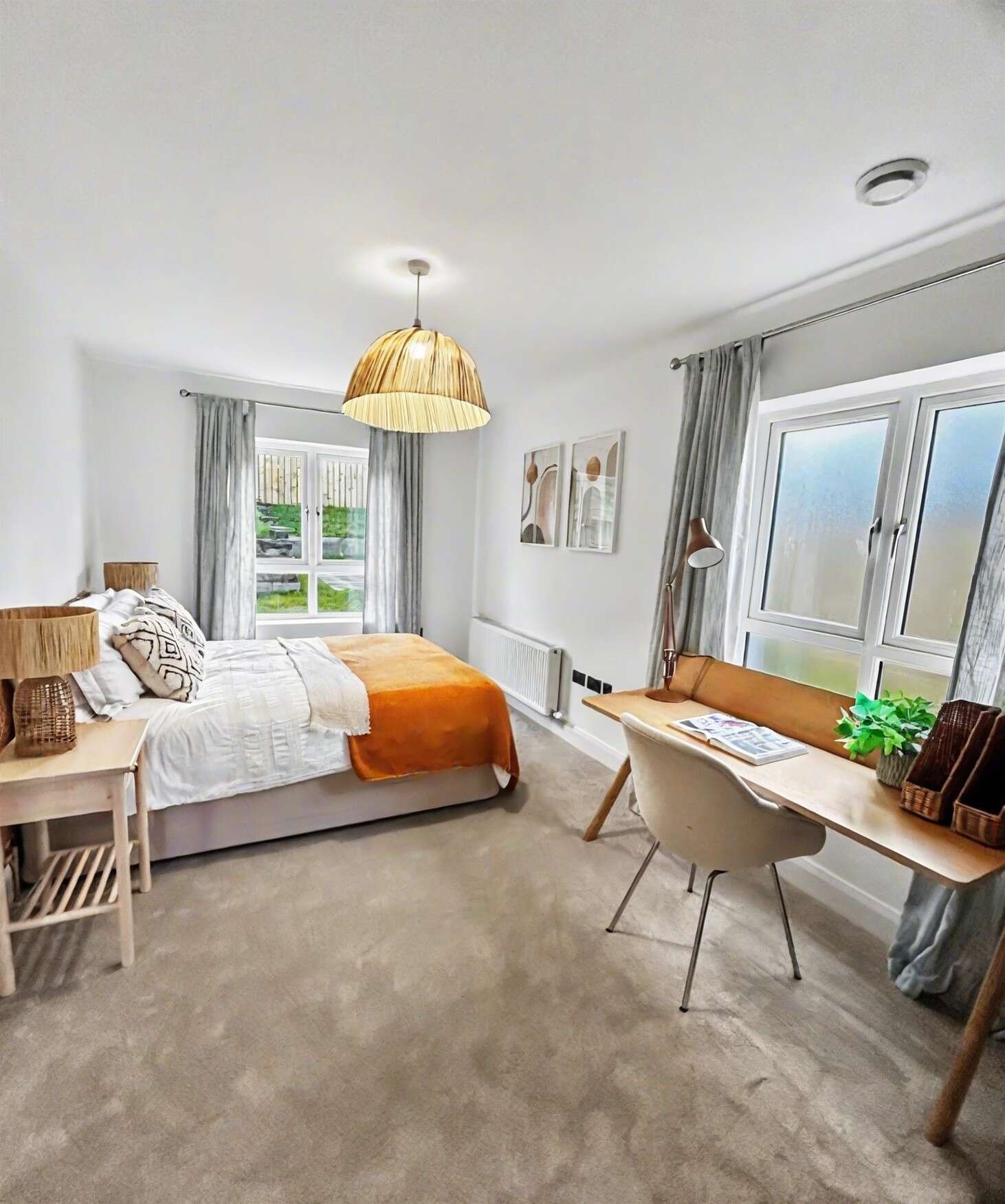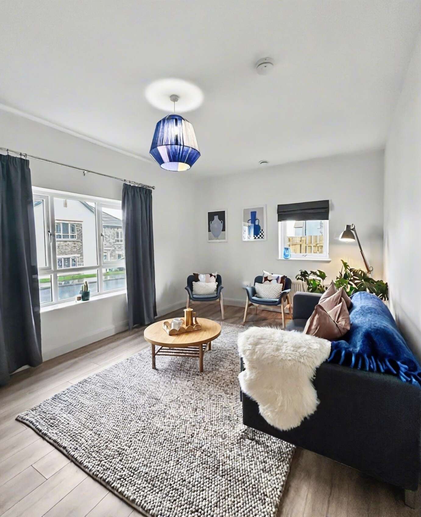 To the front of the property is a generous ground floor lounge, featuring high ceilings and laminate flooring, creating an ideal space for relaxing or entertaining. Also on the ground floor is Bedroom Four, a spacious double with dual-aspect windows and a beautifully finished tiled en-suite, making it perfect for guests, extended family, or flexible living.