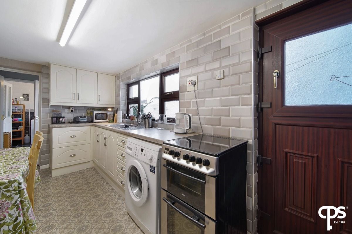 Kitchen - (4.8m x 2.6m) cushion, range of attractive high and low level units, fully tiled walls between units, stainless steel sink unit with mixer taps, countertops, plumbed for automatic washing machine, back door, separate door to back hallway