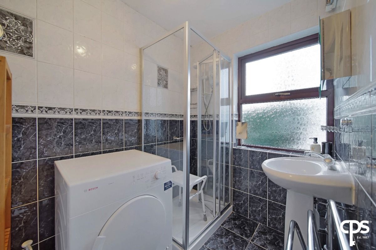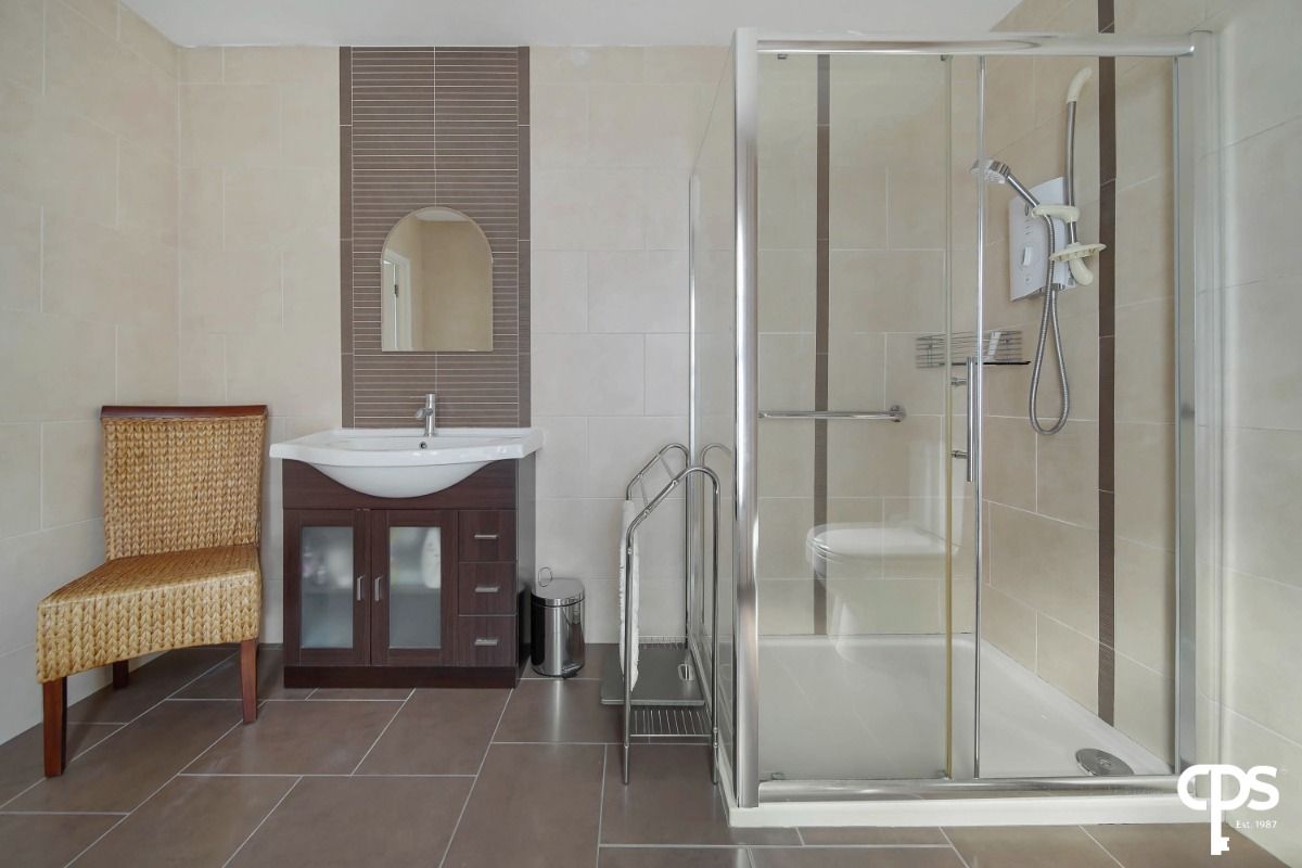 Downstairs shower room - (1.6m x 2.2m) wash hand basin, fully tiled walls and floor, fully tiled step in shower