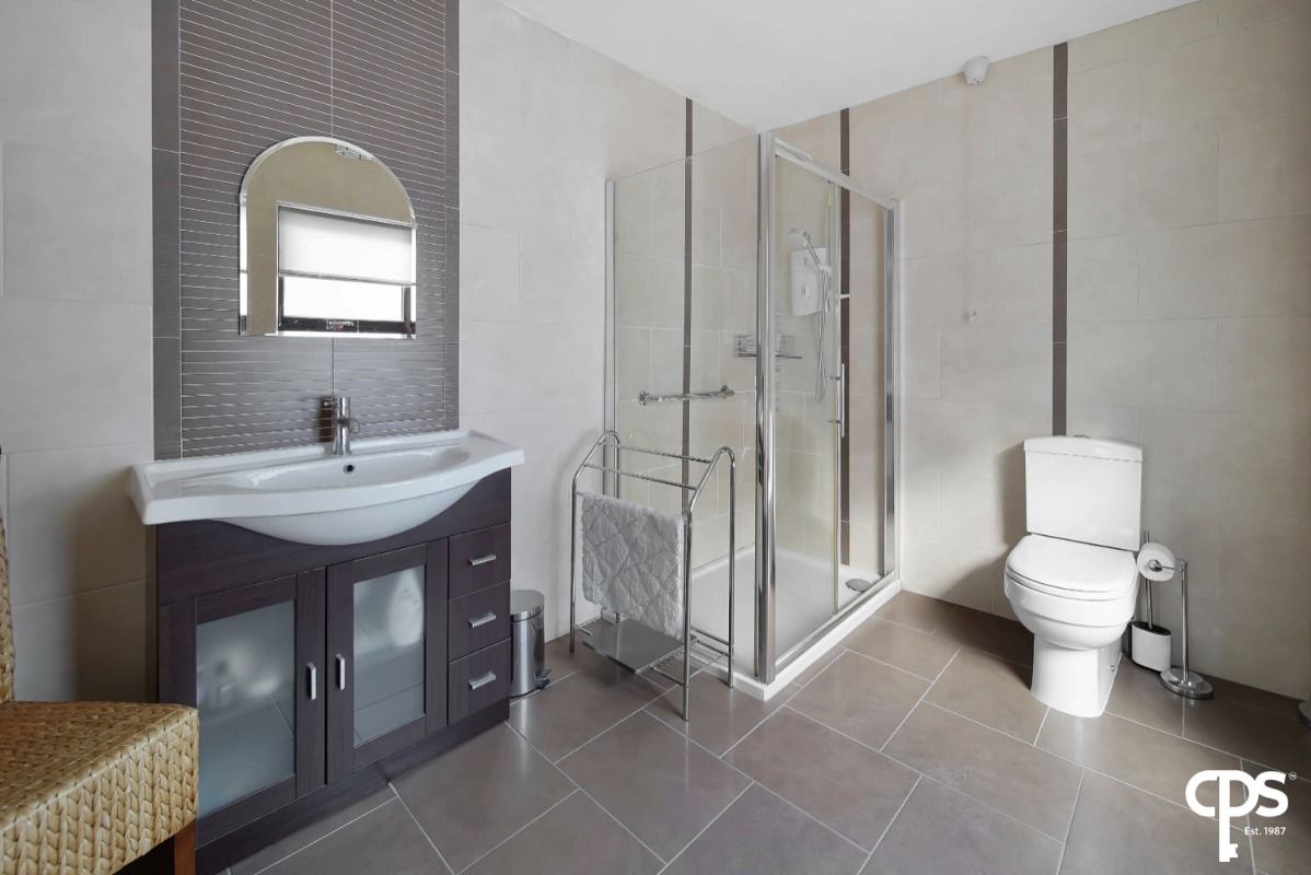 Family Bathroom (rear) (3.2m x 2.4m) - wc, attractive wash hand basin, vanity mirror over, vanity unit under, fully tiled walls and floor, fully tiled separate double walk in shower. Worth noting this was originally a 3rd bedroom and could easily be converted back by its new owners if required.