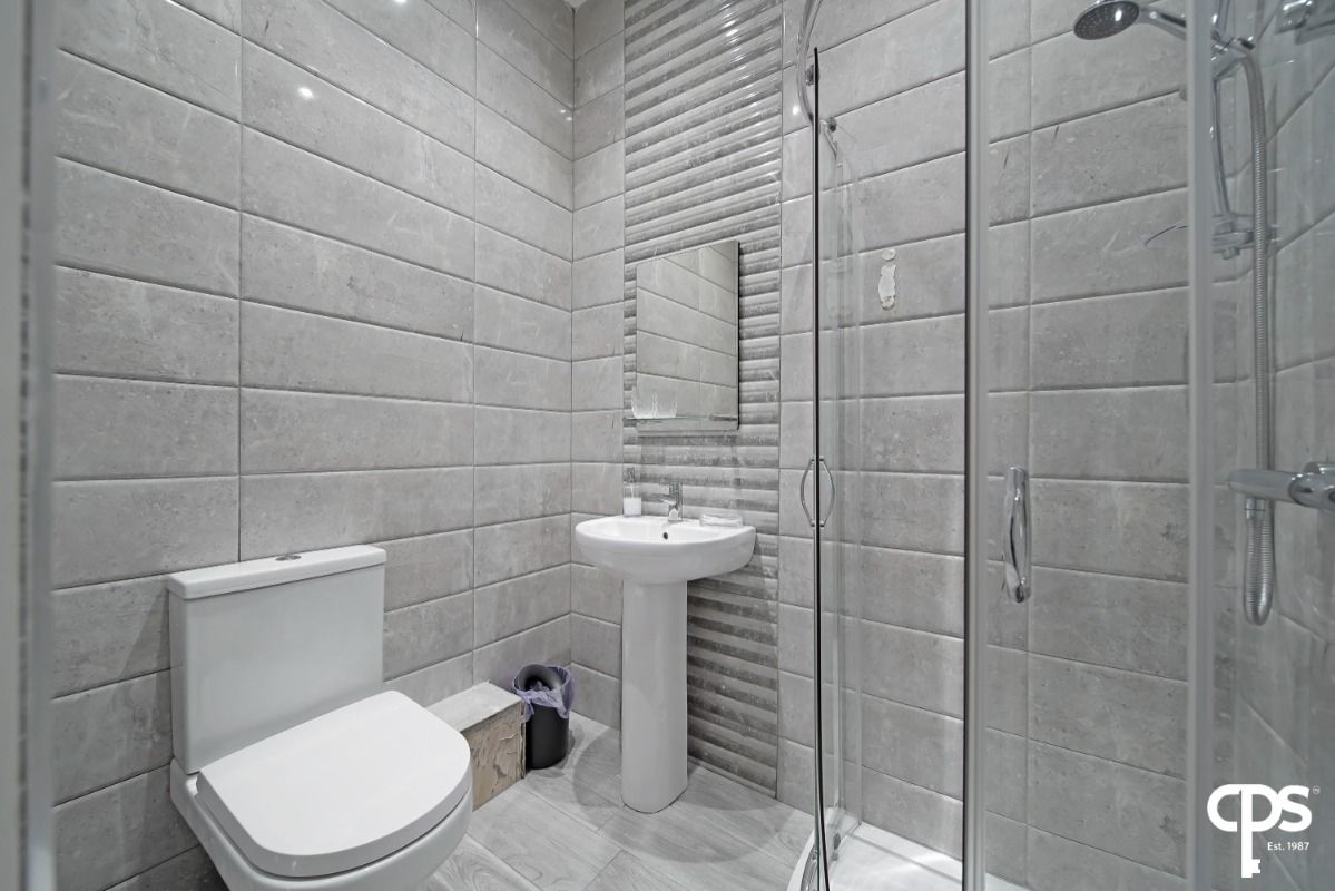 Bathroom (serves as private en suite for Bedroom D only) 1.6m x 2.2m - tiled floor and walls, wc and wash hand basin, separate fully tiled step in shower, heated towel rail