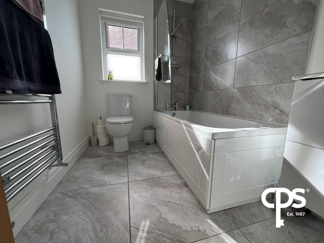 Family Bathroom 1.8m x 2.6m - tiled floor, wc and wash hand basin, vanity mirror over, vanity cupboard under, corner bath