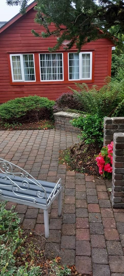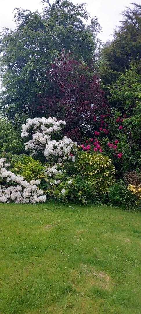 Large beautifully cared for gardens with an organic corner with trees, New patio area, BBQ area and large lawns, Tarmac driveway for loads of cars , fully walled site with double gates.
