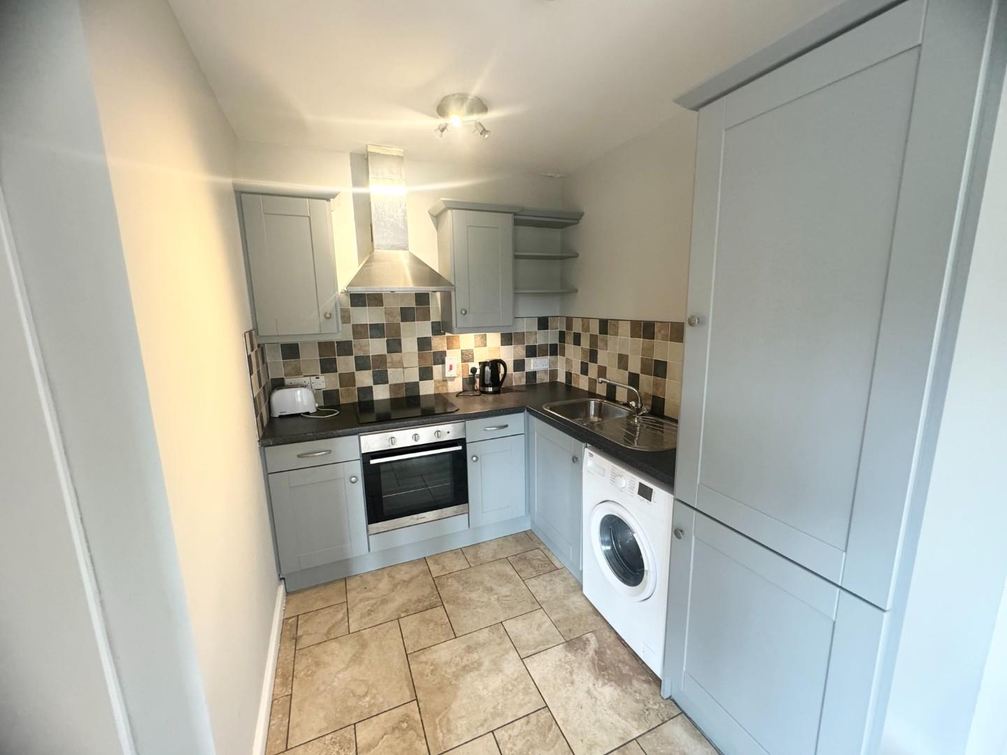 Hi-Low level units with a stainless steel sink and drainer, a fully integrated hob and oven with a stainless steel extractor above, plumbing for washing machine and a fully integrated fridge freezer.