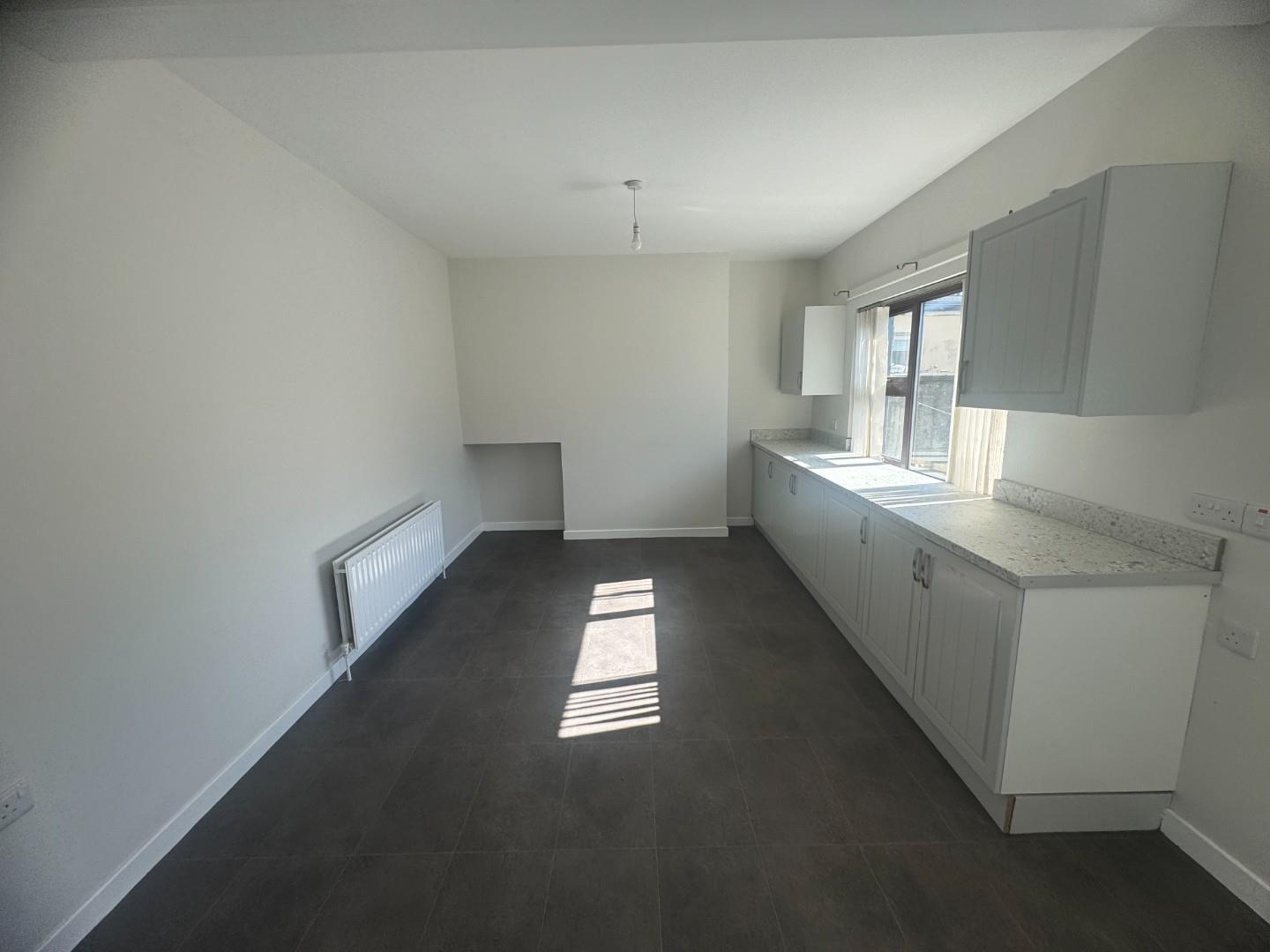 This new created and newly fitted kitchen has new high and low level units with stainless steel sink and drainer, plumbed for a washing machine and wired for an electric cooker. New laminate flooring and door to rear.