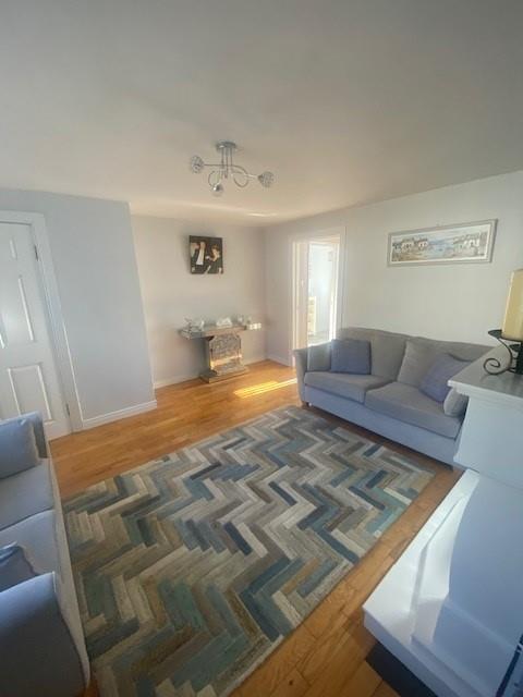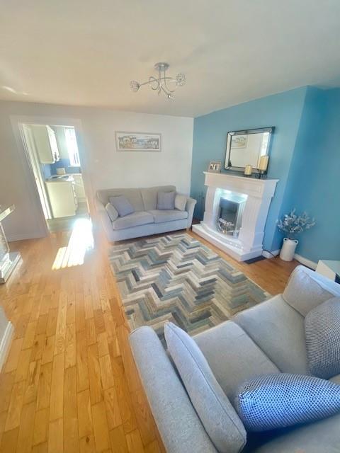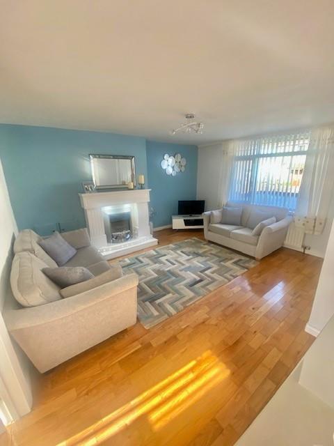 Bright spacious room with feature electric fire and fireplace.